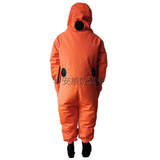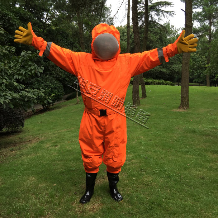 2 Как носить: положите ноги в резиновые ботинки, надеть на штаны, отрегулировать зеленый ремень на шлем с головкой и другие пряжки подбородка и визуальные глаза. После вставления рук в рукав носите перчатки и затяните манжеты. Полем