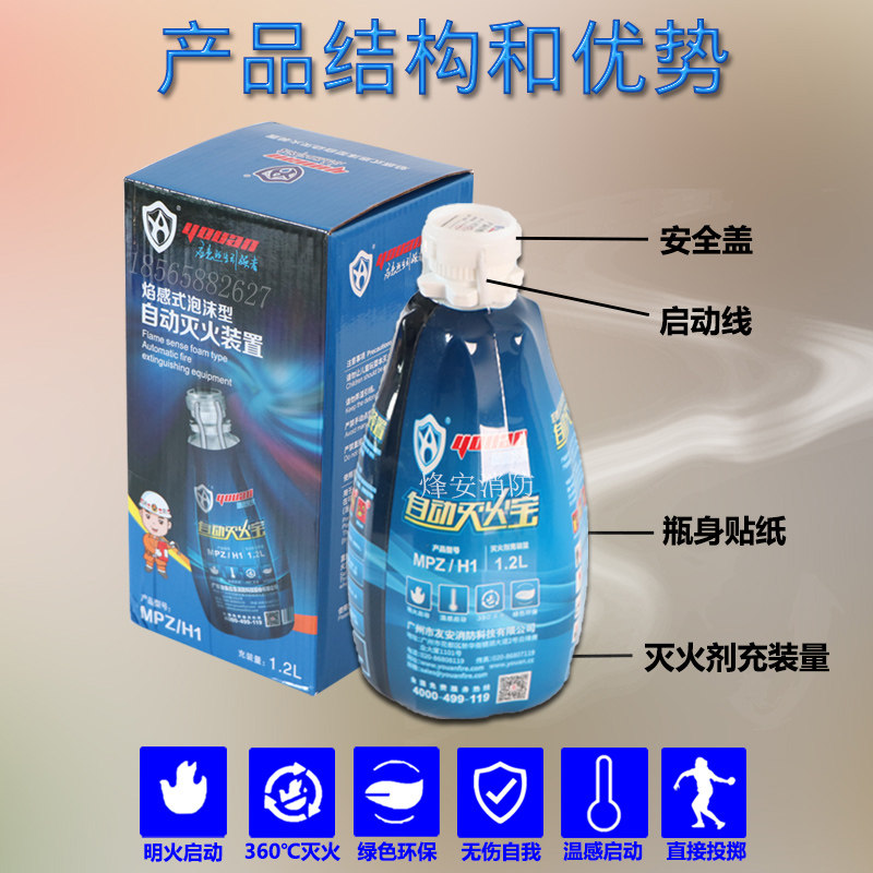 Производитель прямой продажи автоматическое пожарное погашение сокровища Домашнее пожарное обжалование пламя Ощущение, бросающее огнетушитель бомба пена кухонная кухня бутылка
