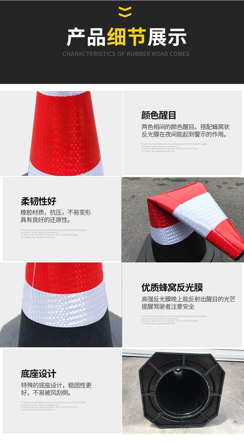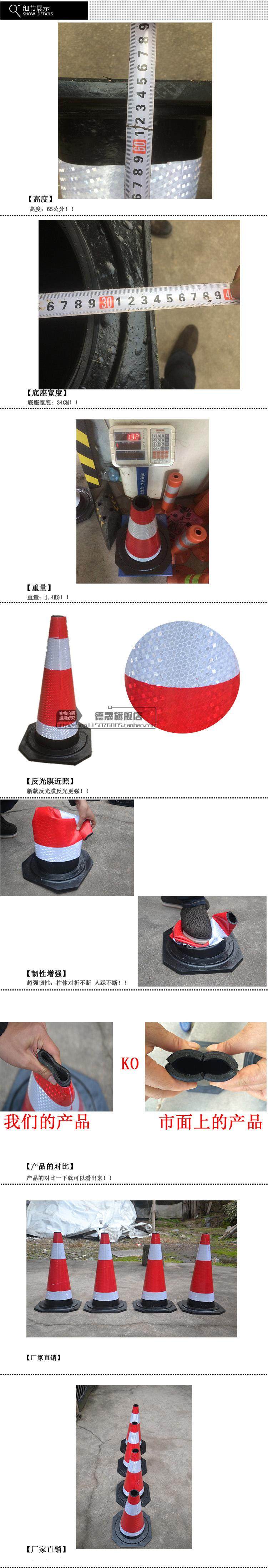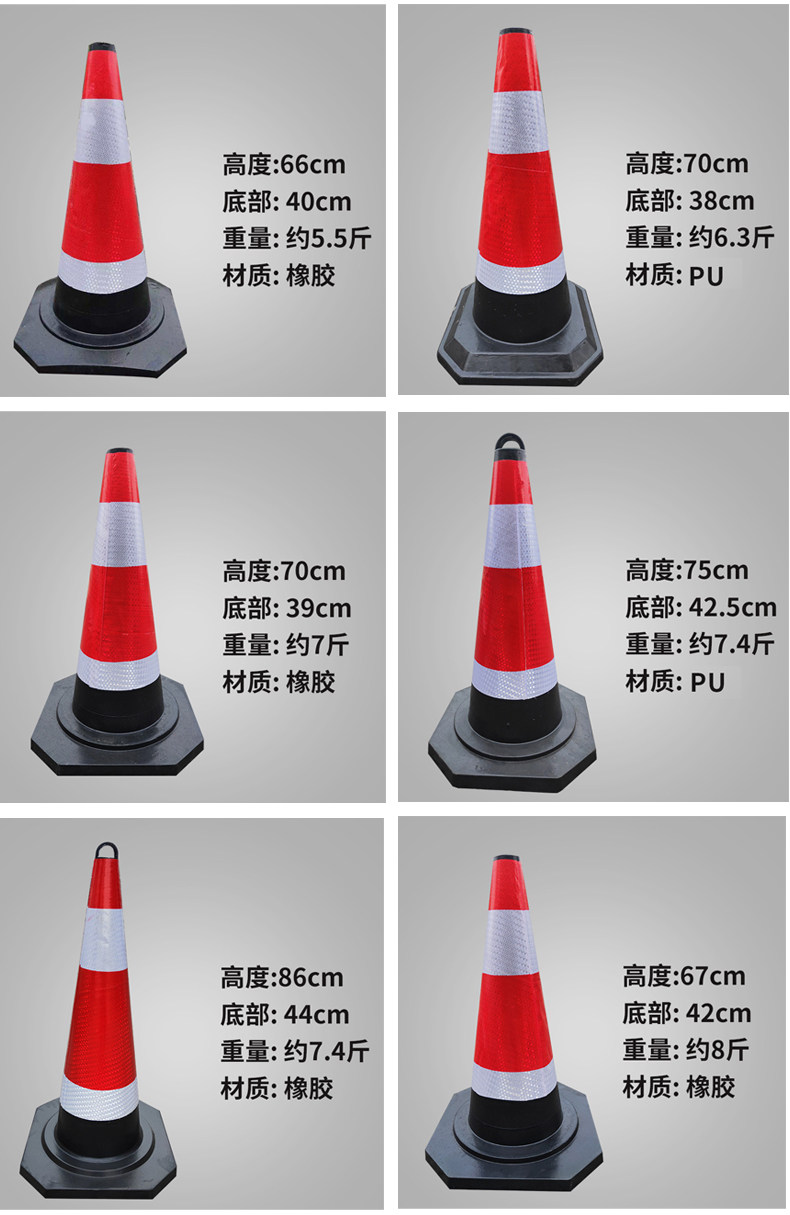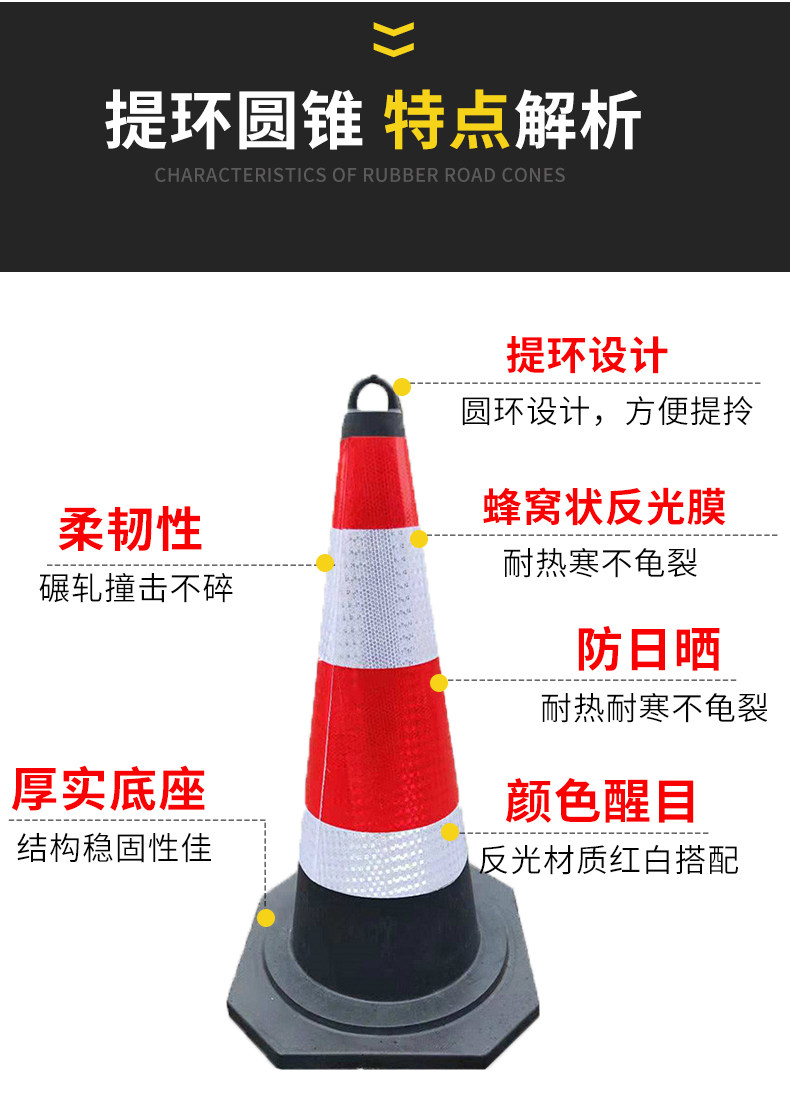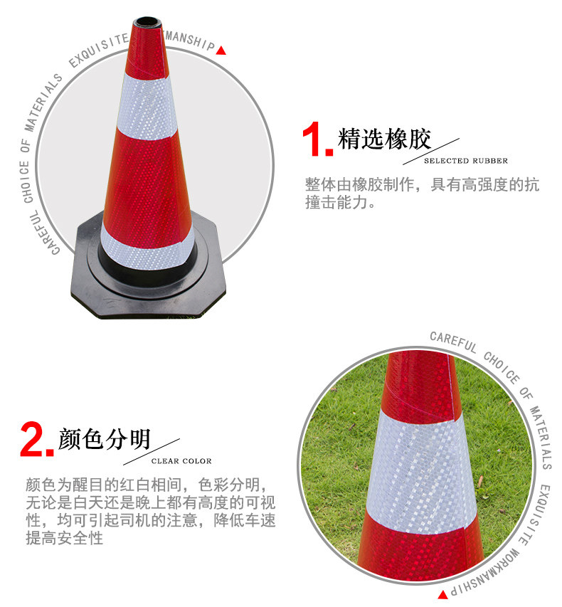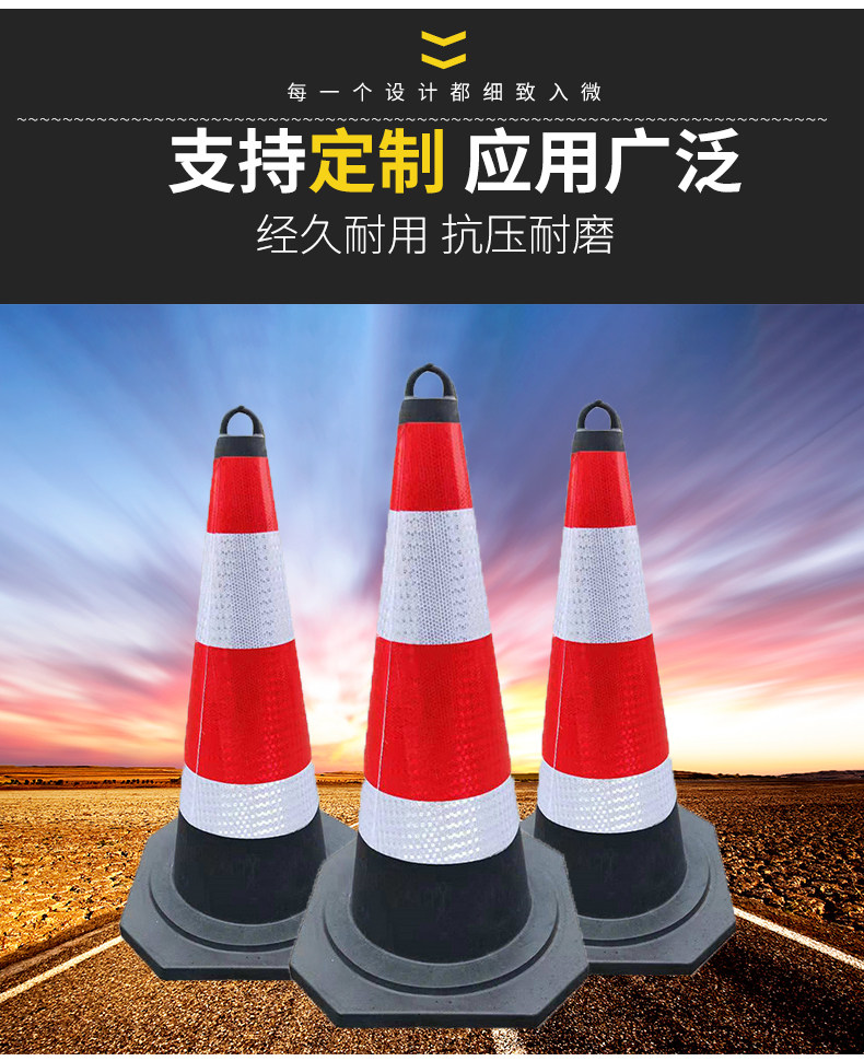 Резиновая дорожная конус изготовлен из резины через общую плесени паровой вулканизации.В сочетании с высокими отражающими материалами отражающий эффект хорош. Он подходит для предупреждения о изоляции между городским пересечением, тротуарами и зданиями.