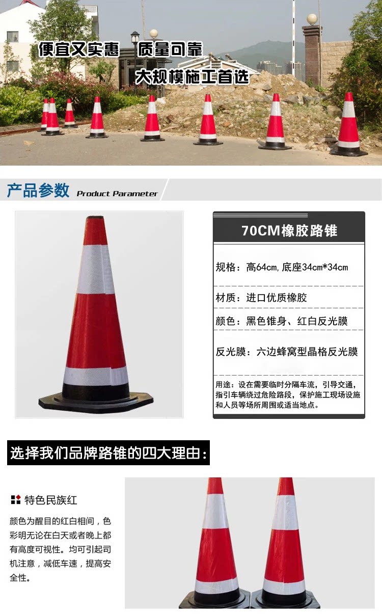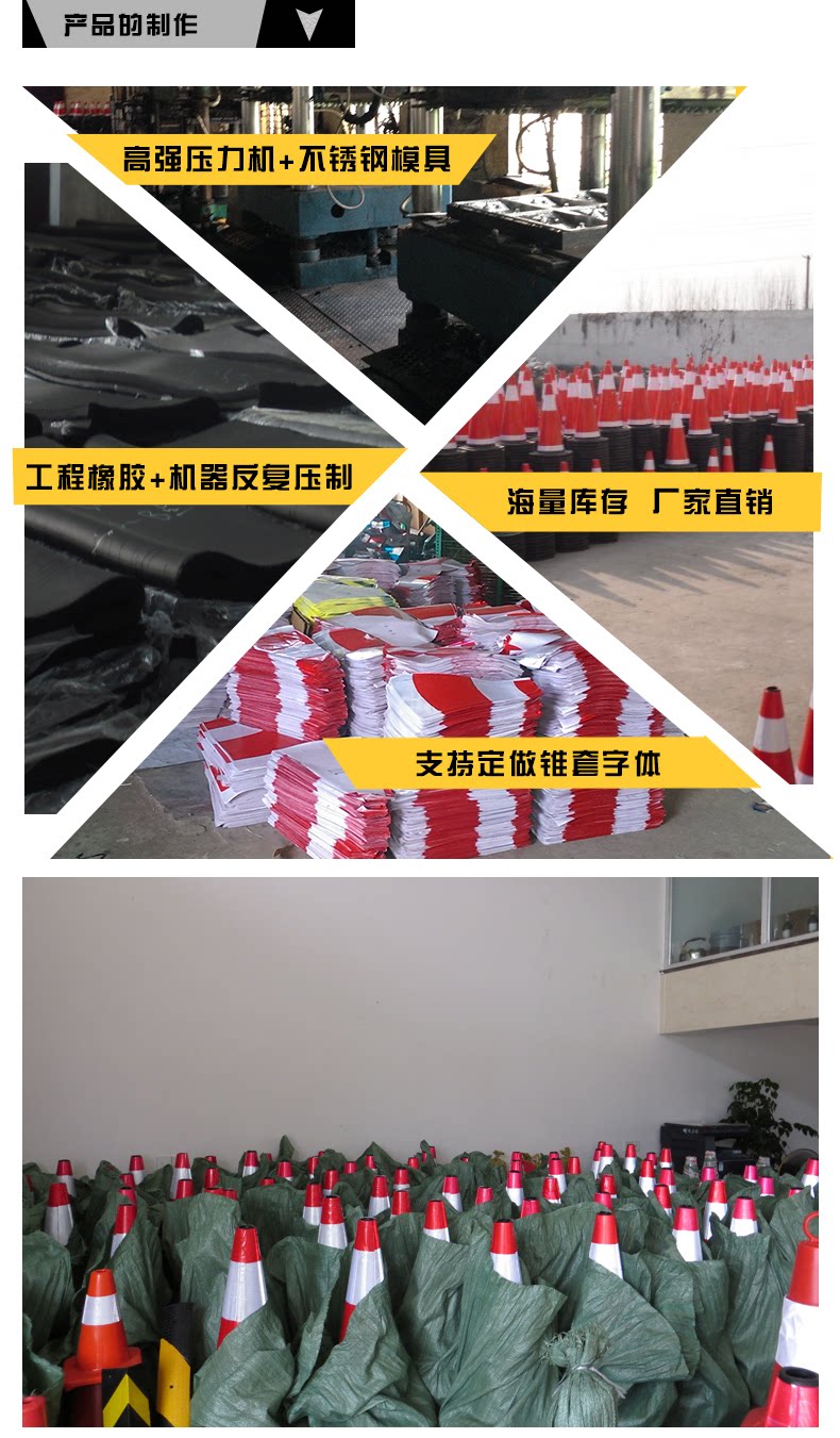 Резиновая дорожная конус изготовлен из резины через общую плесени паровой вулканизации.В сочетании с высокими отражающими материалами отражающий эффект хорош. Он подходит для предупреждения о изоляции между городским пересечением, тротуарами и зданиями.