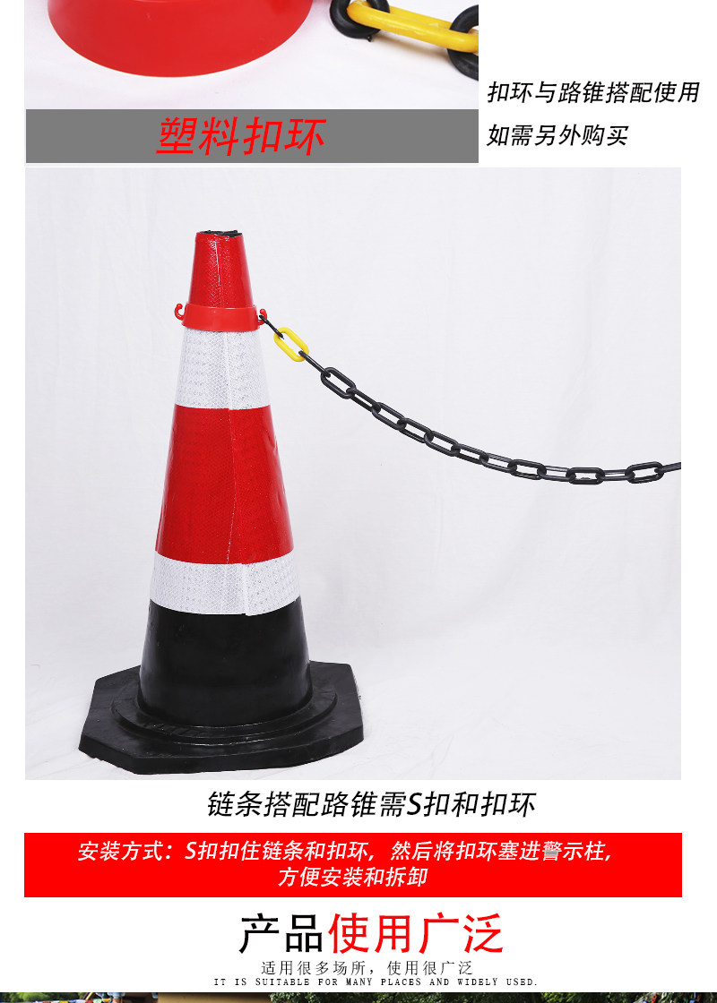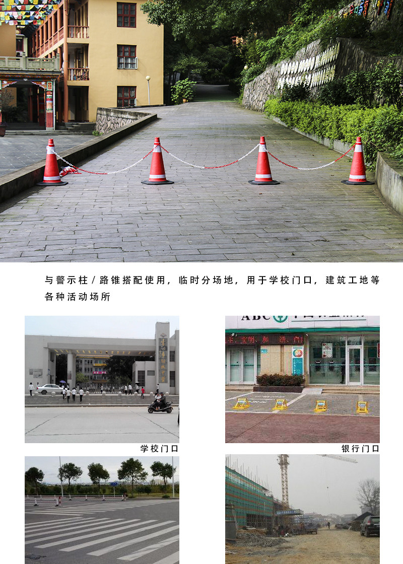 Использование: для таких областей, как парковочные места, отели, спортивные площадки, торговые центры, временные каналы, места для изоляции чрезвычайных ситуаций и т. Д., Используются для изоляции пешеходов и предупреждений, которые могут эффективно напоминать и обеспечить безопасность дорожного движения.Любые сцены, такие как строительство дорожного движения, такие как временная изоляция, могут эффективно предотвратить въезд не -штата, играть в предупреждающую роль, могут быть использованы неоднократно, и их удобно собирать и поселиться.Большой контент и спецификации могут быть настроены.
