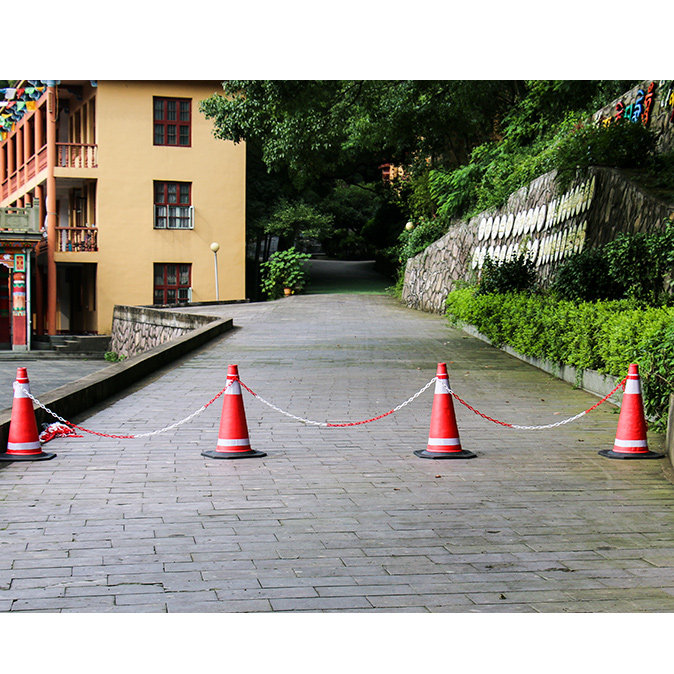 Красный, белый, желтый черный пластик с помощью оперативной защиты цепь отеля парковка изоляция дороги баррикады конус снежный пирог цилиндр