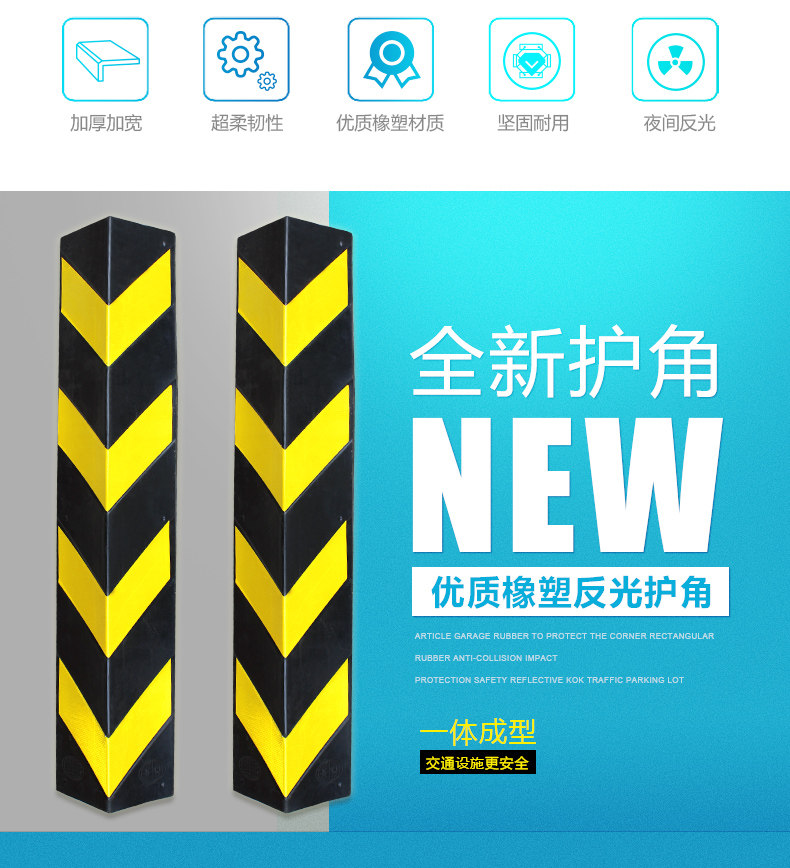 Светоотражающие резиновые накладки на углы, резиновая лента, защитная парковка, 1м