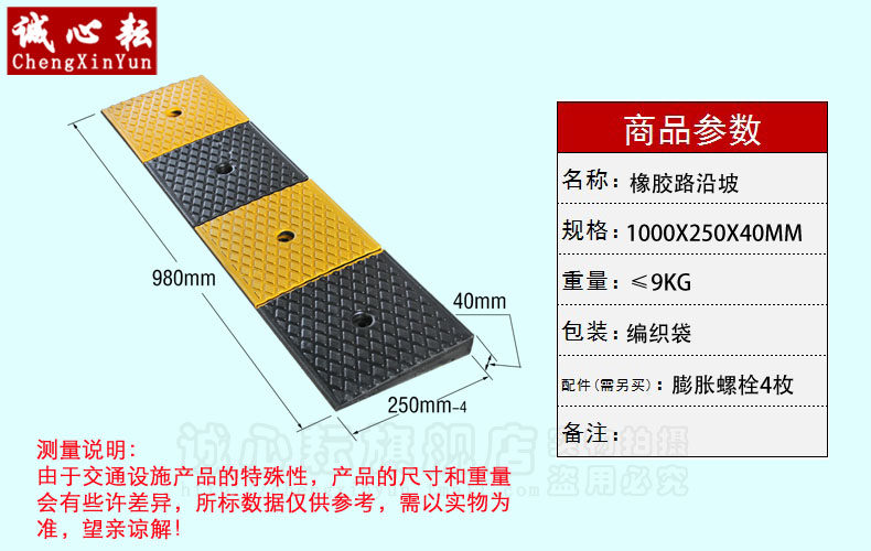 Дорога вдоль склона (дорожный склон) изготовлена из резины с высоким качеством. и отличное шоковое поглощение и сопротивление сжатия.Конструкция поверхности продукта имеет анти -стеснительные батончики, которые могут эффективно предотвратить колеса дождя и снега.
