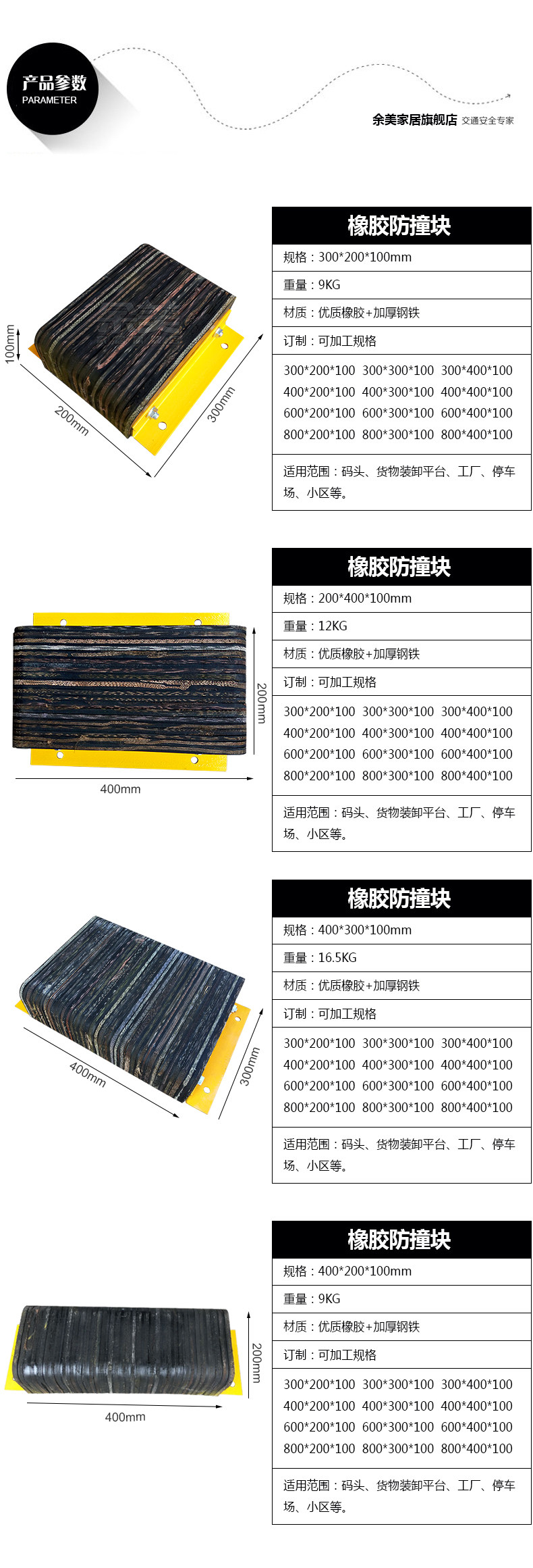 Резиновый блок -коллизион -тип угловой железо столкновение полосатый буферный блок.