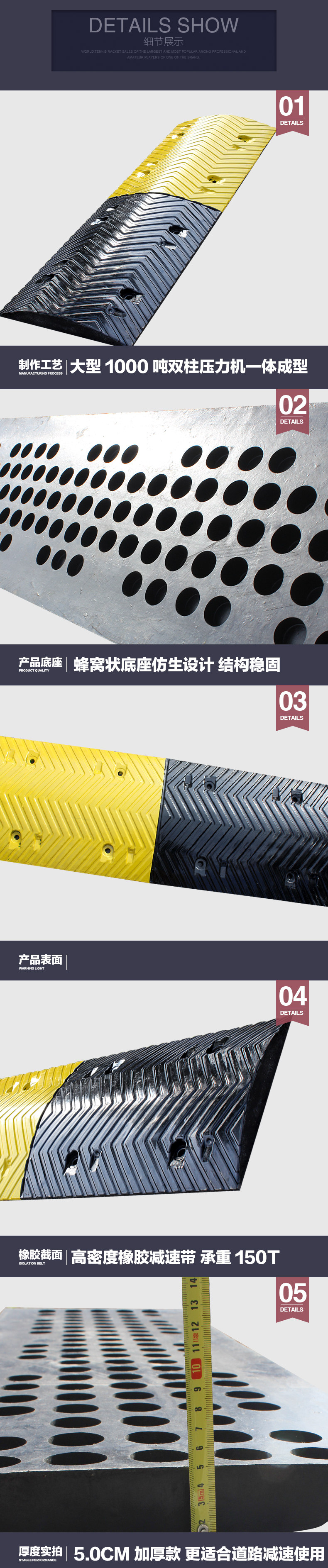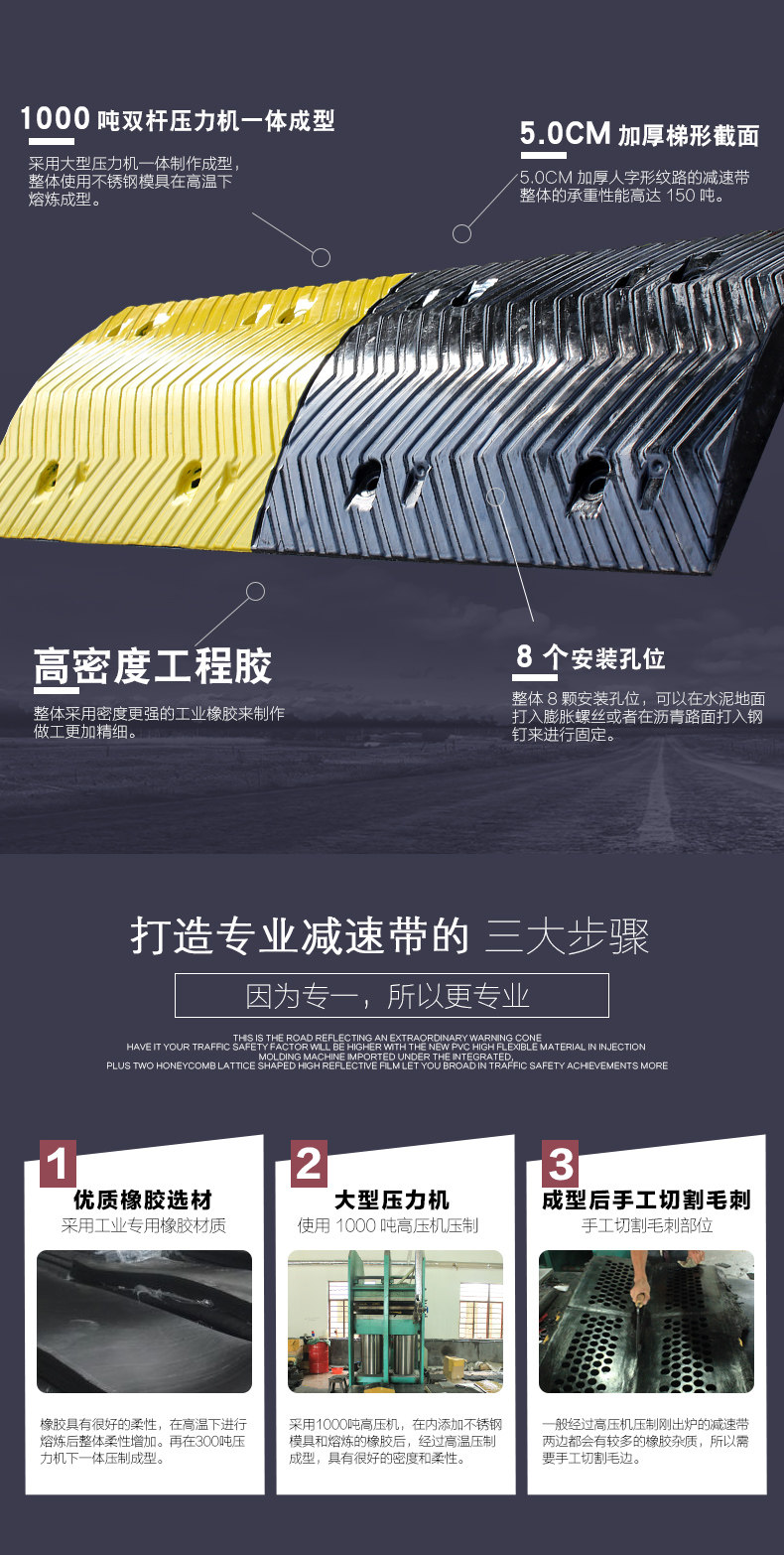 Утолщающая резиновая диапазона замедления с обратным типом, противоположной полосой резиновой резиновой отделении, Ridge Road транспортное средство, помещение для дальнего транспортного средства.