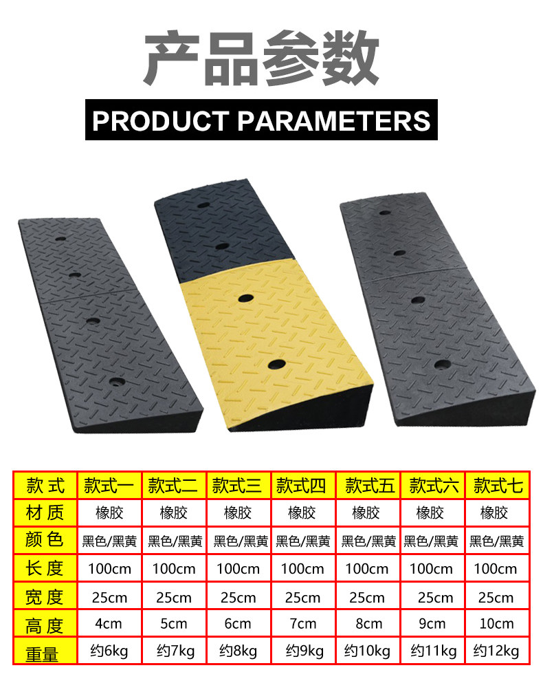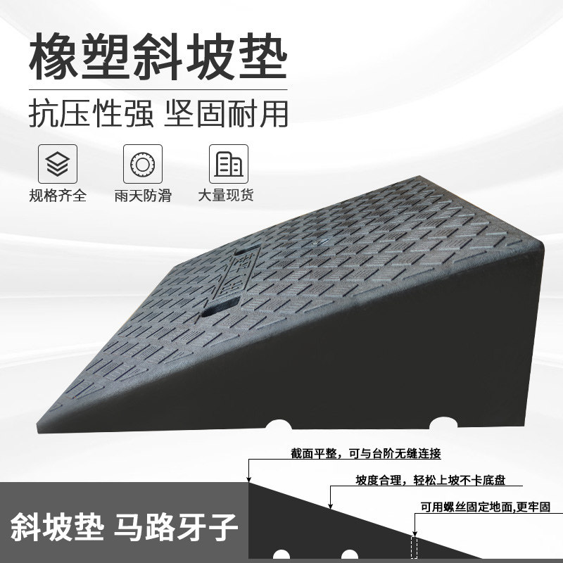 Резиновая подушка склона склона, зуб, резиновая и пластиковая дорога вдоль портативной пороговой прокладки автомобиля с склоном, подушка для скалолазания треугольника