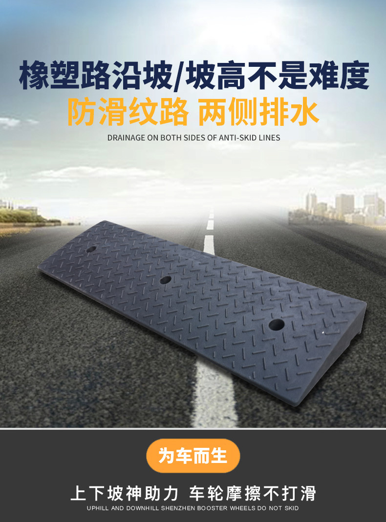Резиновая наклона 9 см Порог порога пороговых ступеней на доске склона в гору Треугольник Резиновая дорога вдоль склона