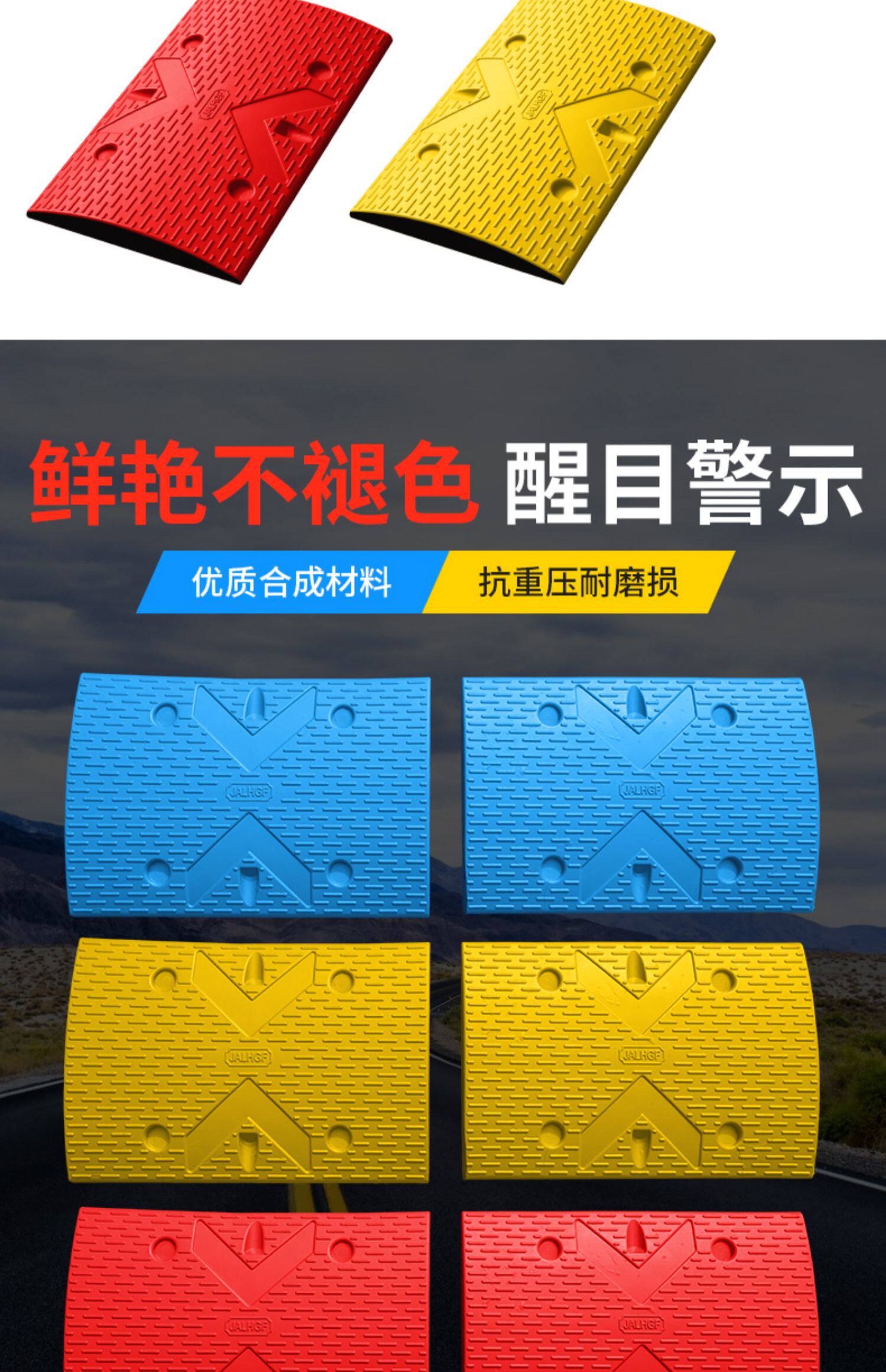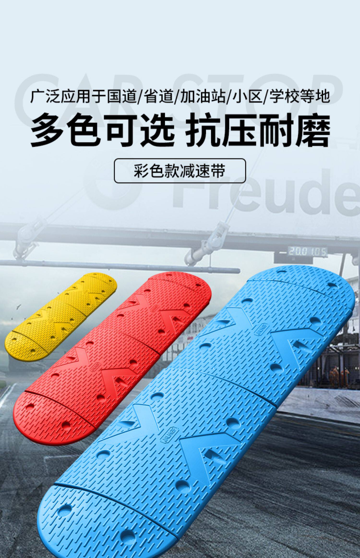 Цветная синтетическая красная, синяя и желтая полоса замедления резиновая дорожная полоса Doad Band Car Road Drow Deceleration Buffer Buffer Deceleration Ridge