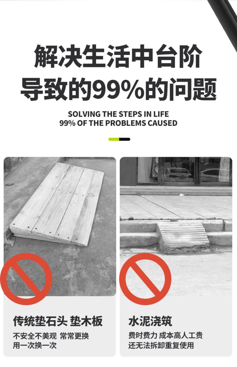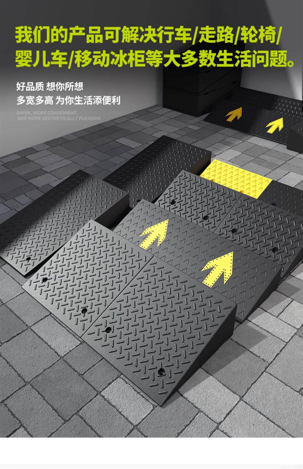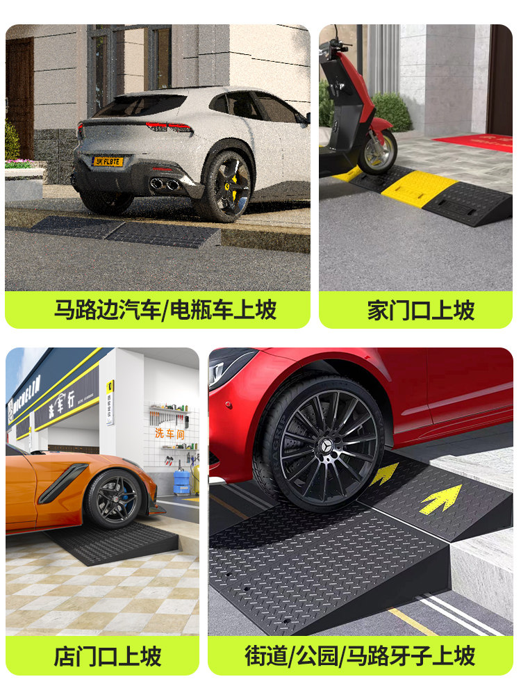Пошаговая накладка порог, наклонная наклона, дорожная резиновая сплошная дорога вдоль склона дома в гору в гору