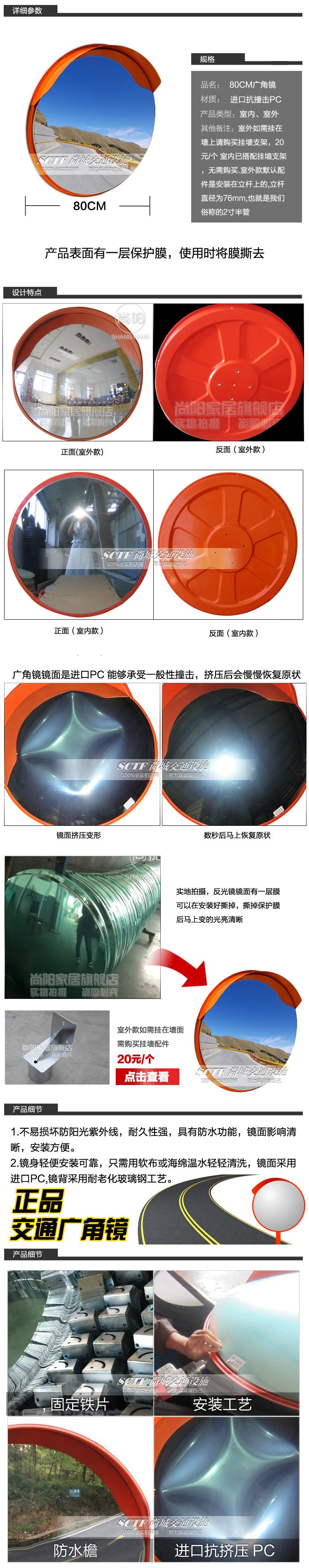80 см в помещении и на открытом воздухе Широкий зеркальный зеркальный ухабистый мягкий лицевая дорога Широкая зеркальное зеркальное сферическое соотношение поворотное изгибающее зеркало