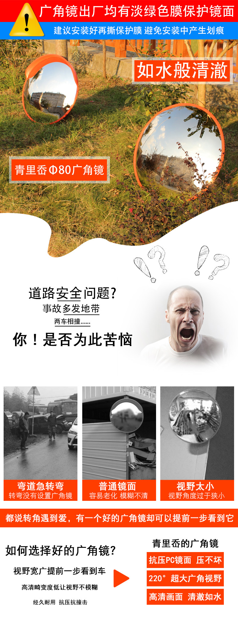 Широкоугольное безопасное светоотражающее зеркало, 80см