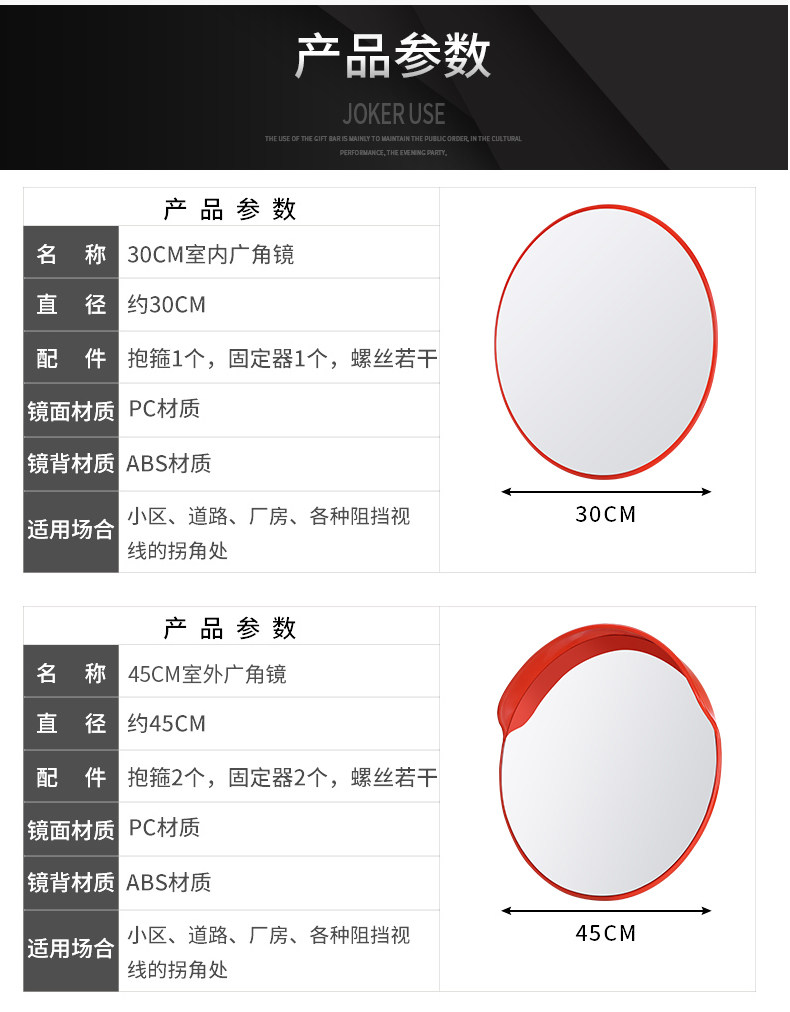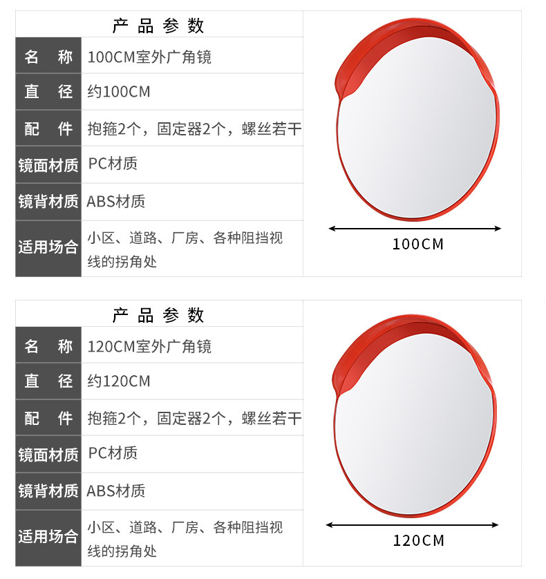 Широкоугольное уличное светоотражающее зеркало, 30/45см