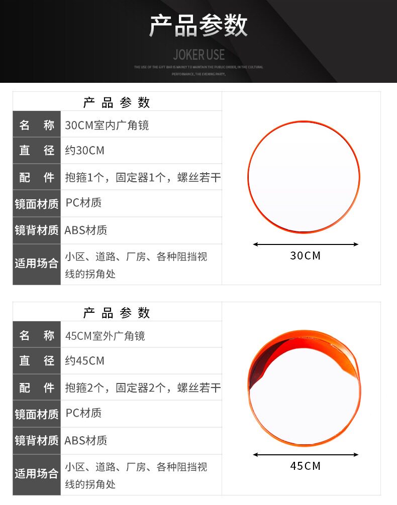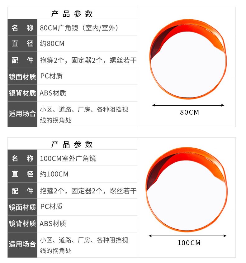 Широкоугольное уличное светоотражающее зеркало, 30/45см