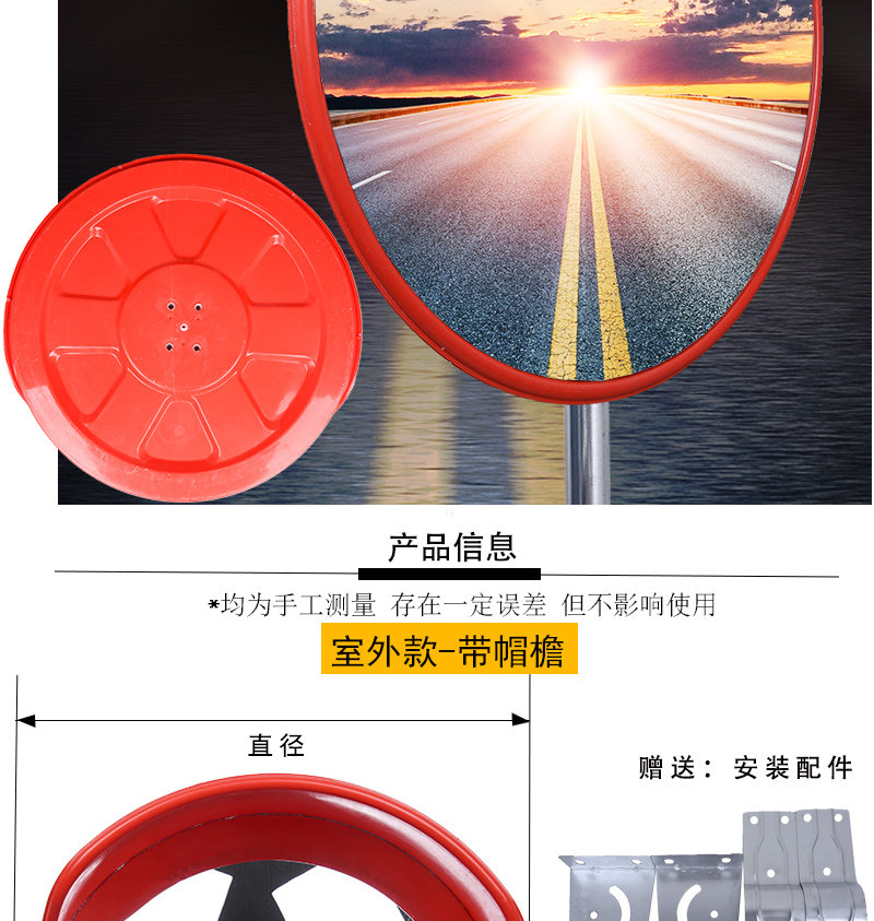 Широкое зеркальное зеркальное зеркальное зеркало Угловое зеркало наружное отражатель внутренний зеркальный зеркальный зеркал дорожная дорога Поворот зеркальный гараж Антитефте зеркало 80 см.
