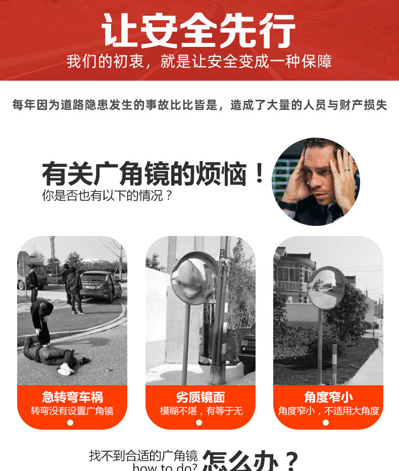 Широкоугольное зеркало для уличного движения, 80 см, дорожное поворотное зеркало, выпуклое зеркало, отражающее зеркало, противоугонное зеркало, гаражное угловое зеркало с защитой от столкновений