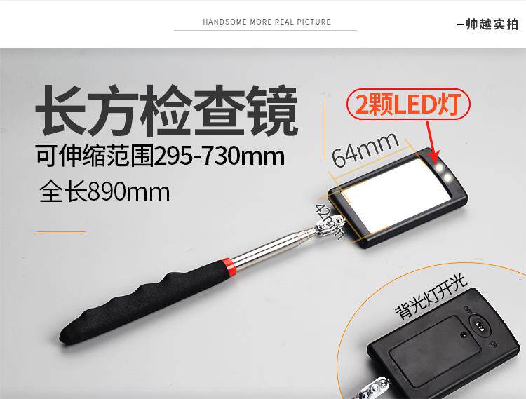 Телескопическое складное светоотражающее портативное зеркало из нержавеющей стали