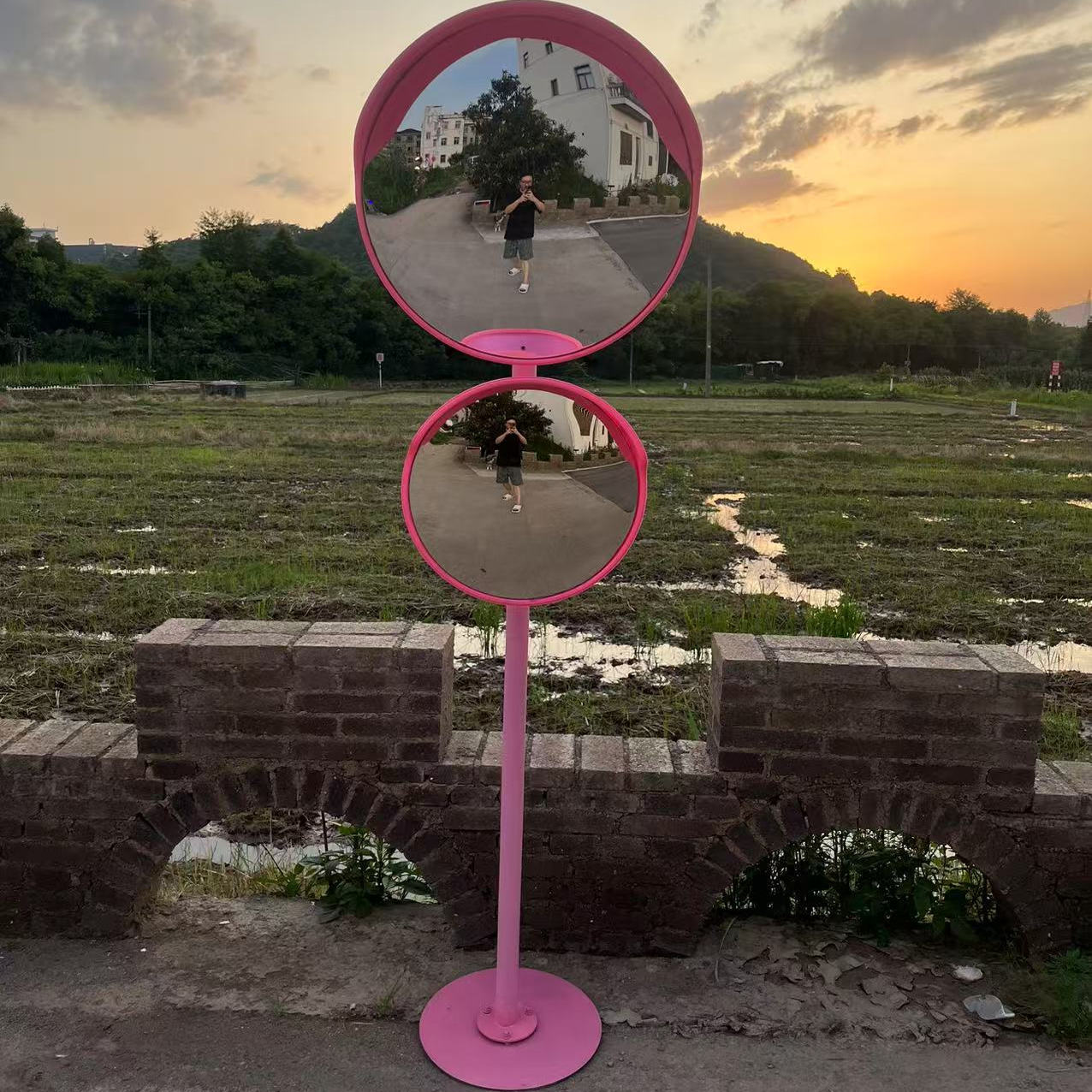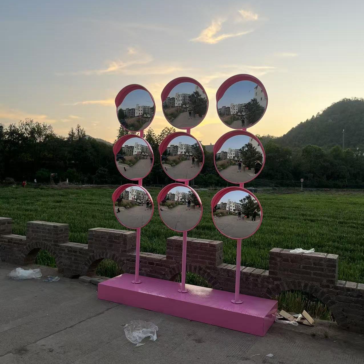 Декоративная колонна, вогнуто-выпуклое зеркало с сеткой из девяти квадратов, уличное интернет-регистрация знаменитостей, креативное розовое широкоугольное зеркало, отражатель для фотографий в живописном месте