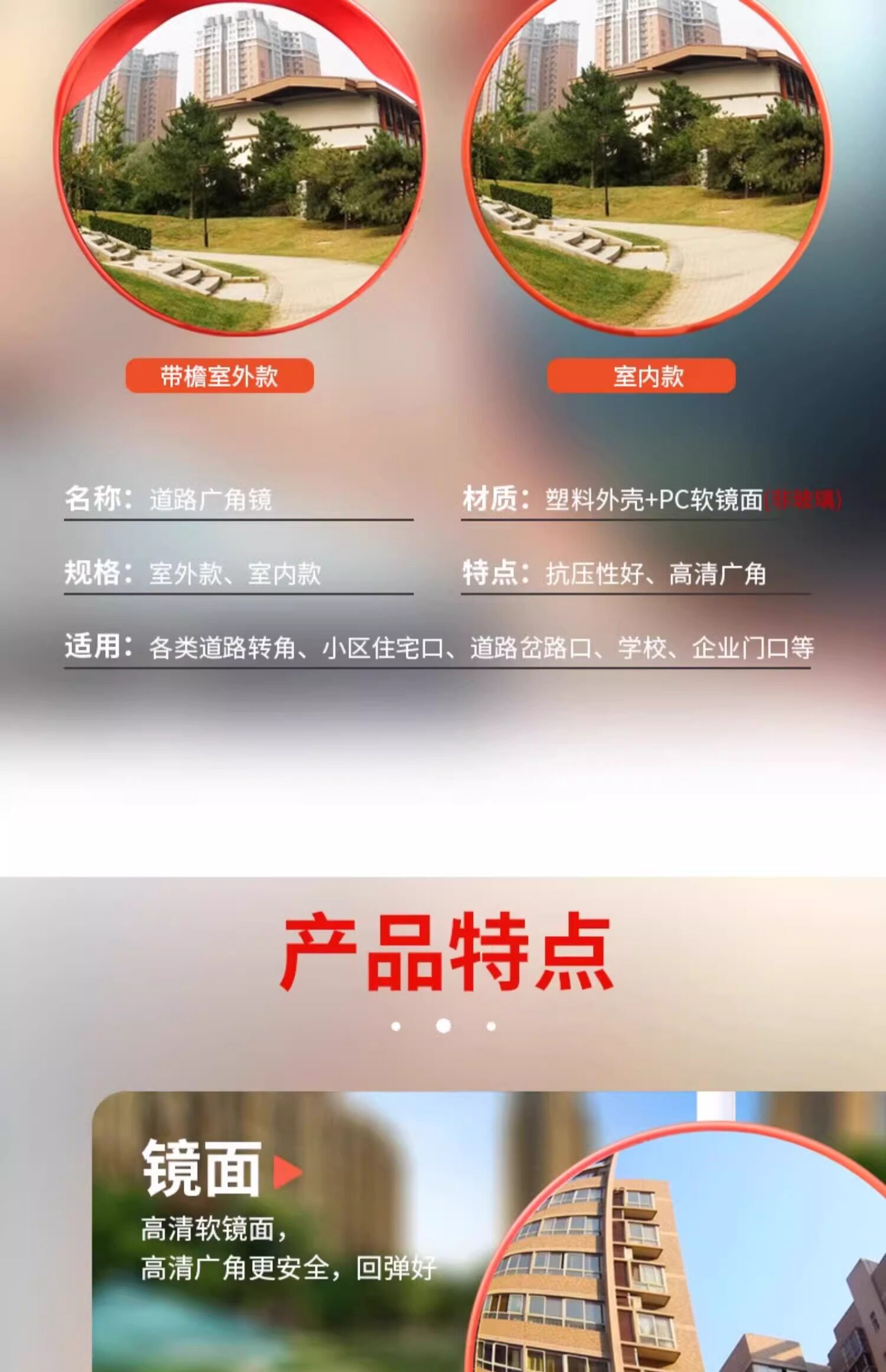 Широкоугольное зеркало для дорожного движения, выпуклое зеркало, угловое зеркало из оцинкованной стали, перекрестное вогнуто-выпуклое зеркало, поворотный отражатель для улицы