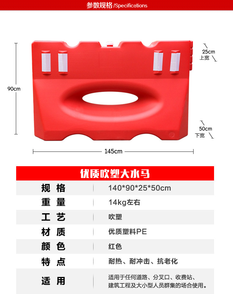 Новый материал Три -ямы, выдувающие пластиковые большие водопроводные лошади с высокой скоростью дороги, шунтирование анти -коллизионного столкновения изоляция Dun Foshan Производитель