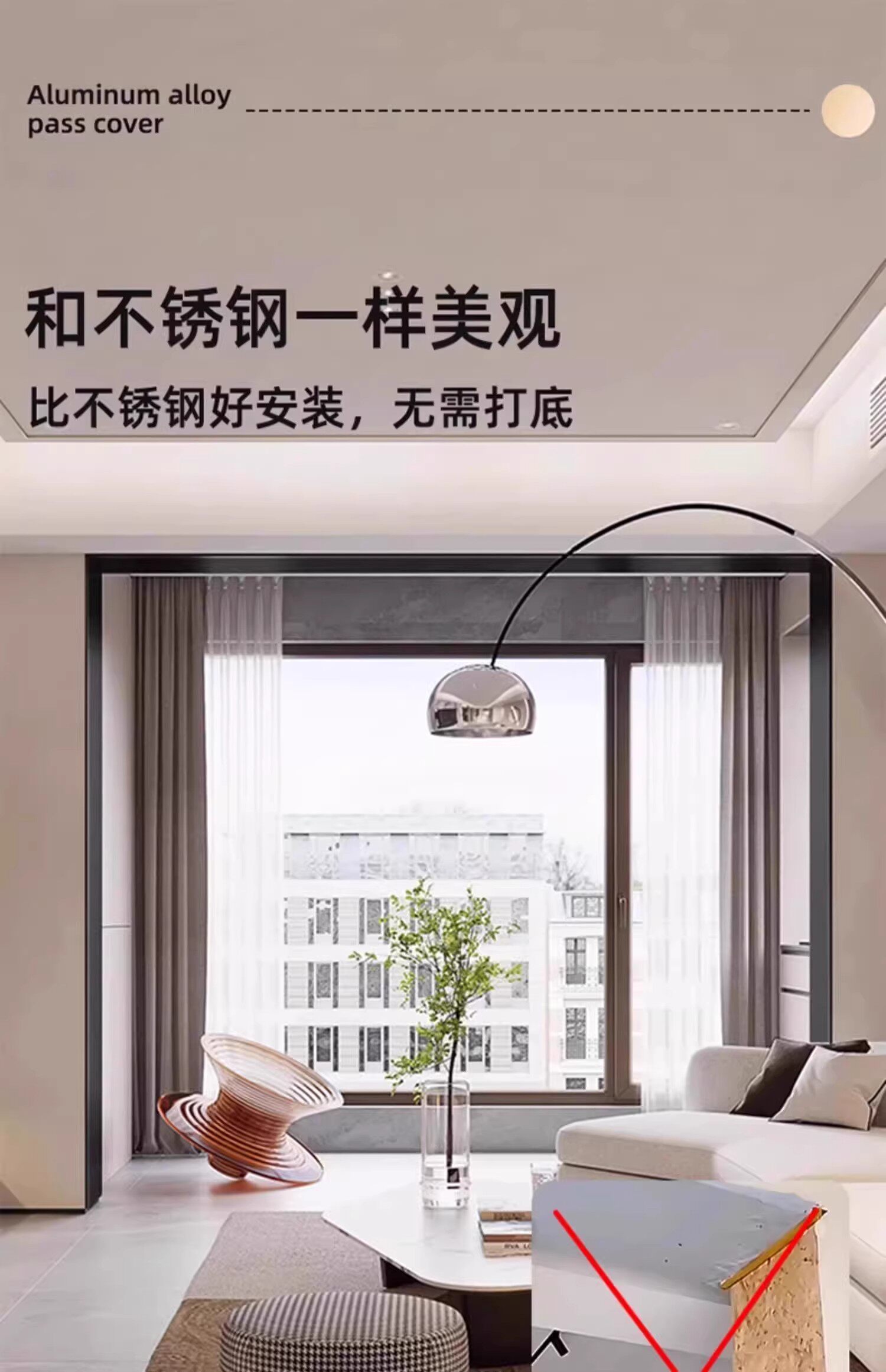 Дверная крышка из алюминиевого сплава с краевой дверной коробкой и очень узкая оконная крышка с балконной бесшовной крышкой из металлического титан-магниевого сплава из нержавеющей стали