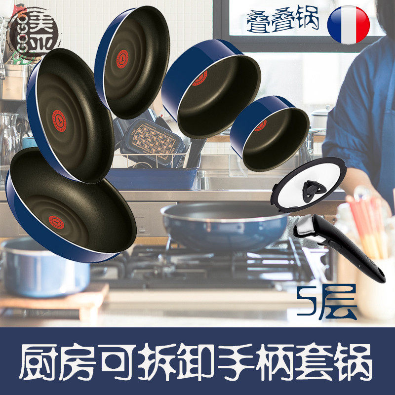 Японское пятно 5-слойное плавание T-FAL T-File Scovering Pot Magge Set, не жареная на фрич