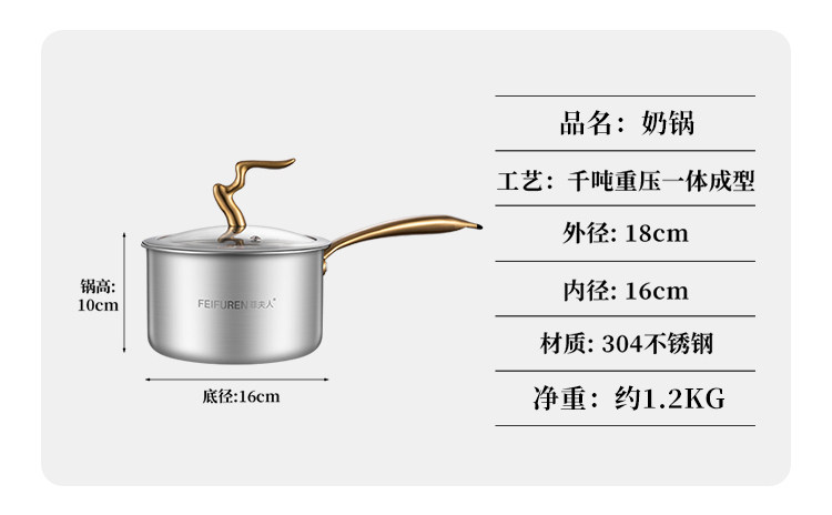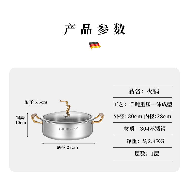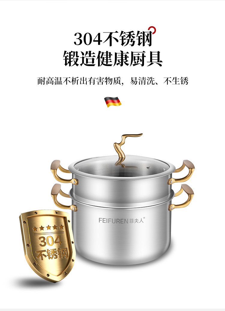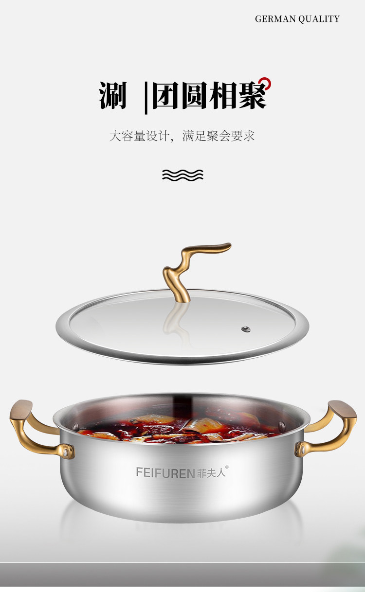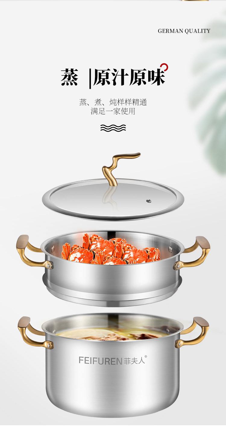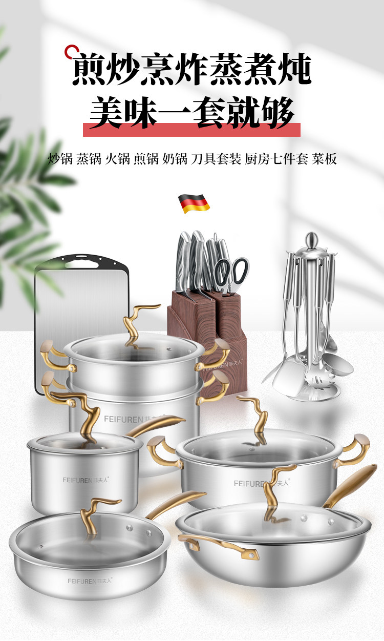 Германский горшок Feifuren набор полный набор домашних трех кухонных кастрюлей -фаршированная кастрюля, не -стабильная плита, горячий горшок для пароварки с молоком