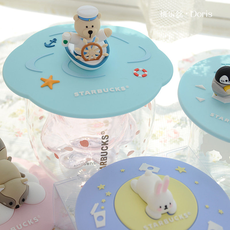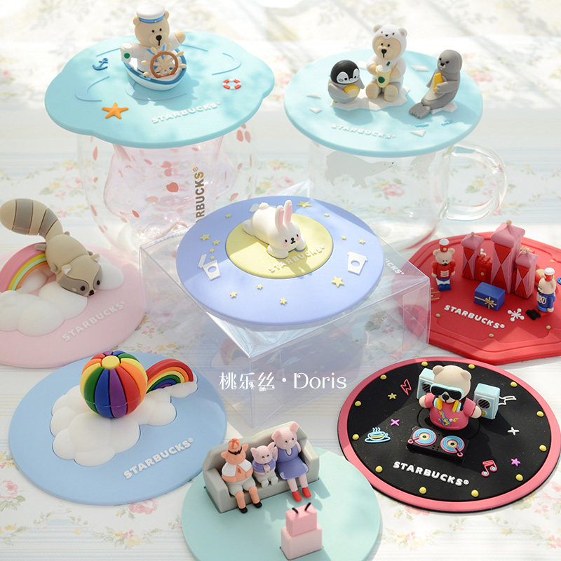 Пылезащитная герметическая силиконовая мультяшная кофейная крышка для стакана, с медвежатами