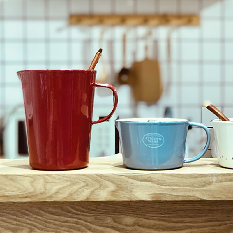 Японская измерительная кружка со шкалой, вместительная и большая электромагнитная чайная чашка, эмаль