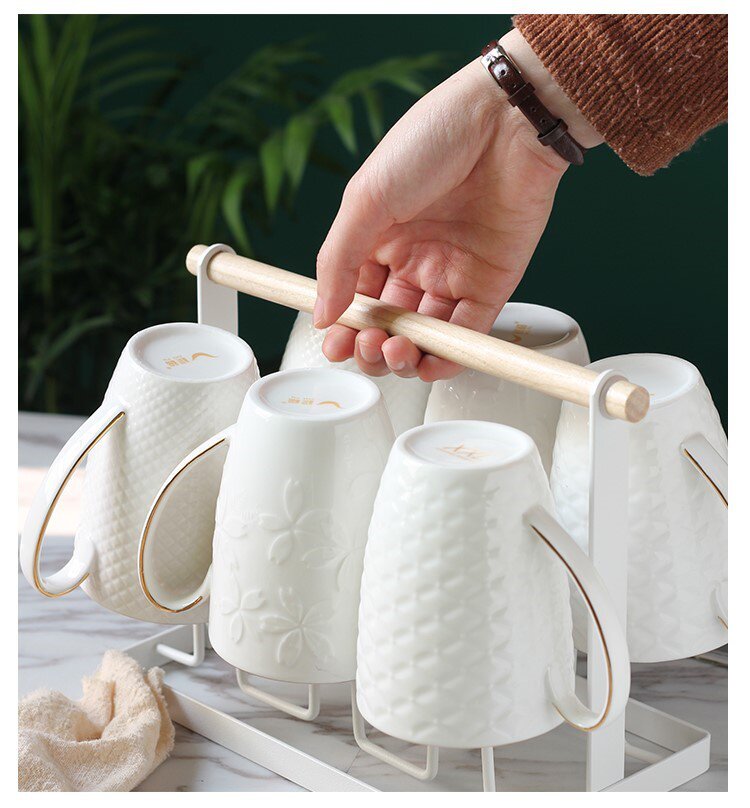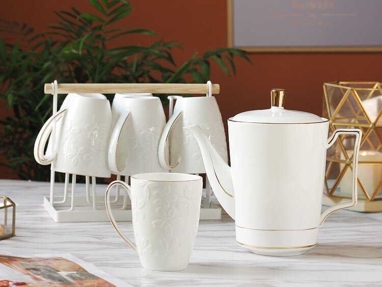 Креативный милый заварочный чайник, чайная чашка для гостиной, керамический комплект для домашнего использования, 6 шт, простой и элегантный дизайн