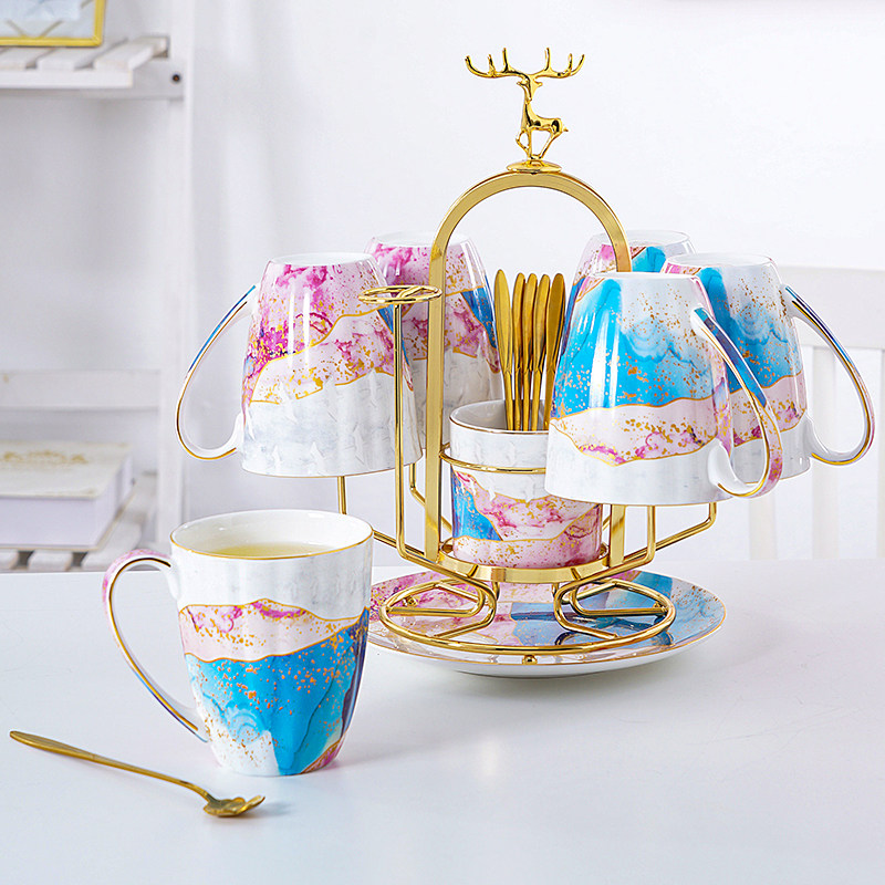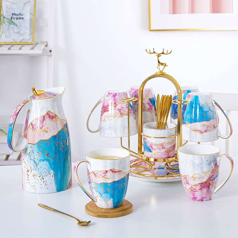 Европейский стиль костяной фарфоровой водяной чашка набор для водяной принадлежности для гостиной маленькая роскошная чайная чашка комбинация каркаса комбинация