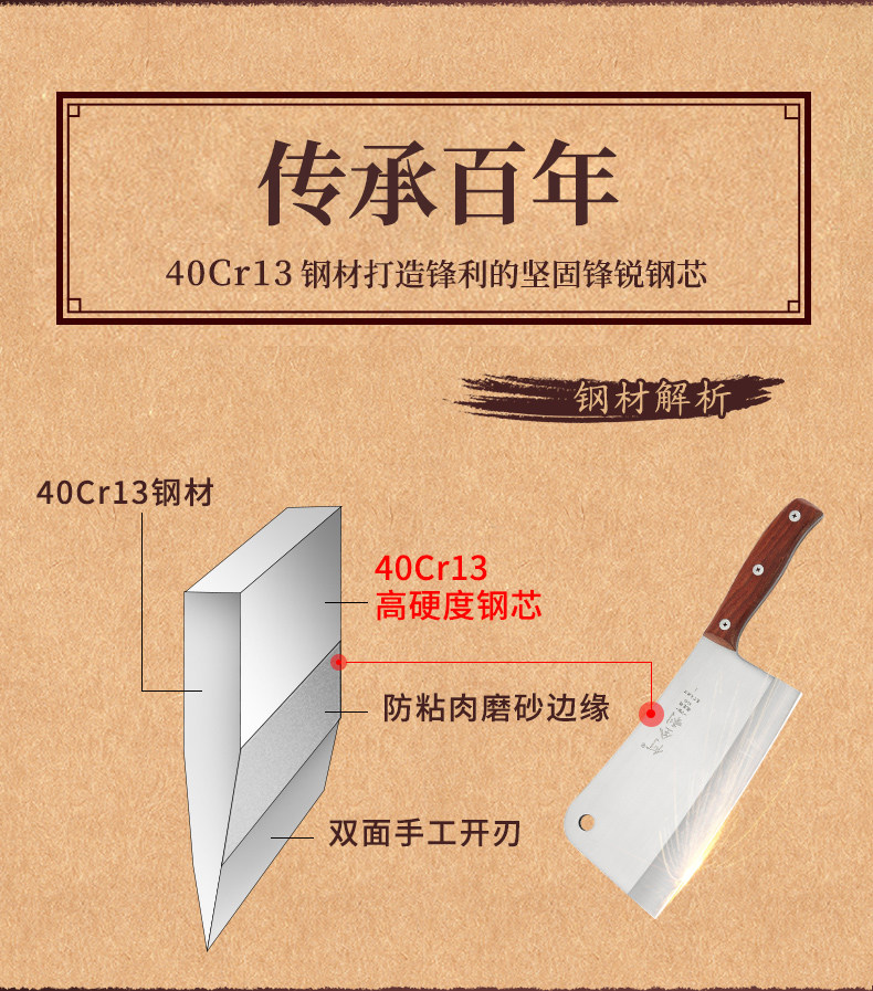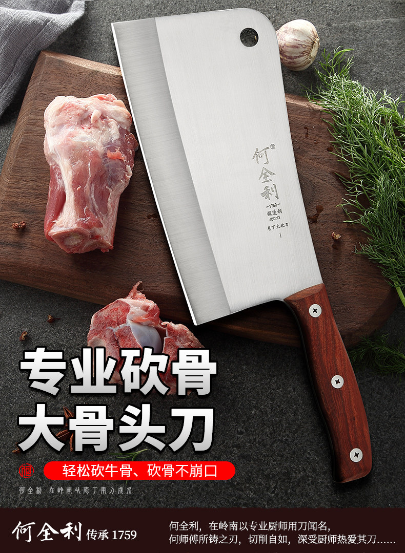 Он Quanli обогатывает утолщенный костный нож и убивает мясника свиньи, кость, покрытый костью говяжьей кости, мачете нарезанный костный нож