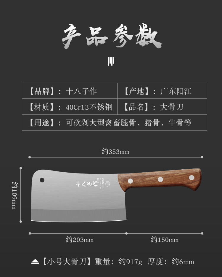 Восемнадцать сыновей - это нарезанный костный нож, нарезая нож, утолщенный большой срезанный костный нож, домашний мясник коммерческий нож Специальный нож Специальный нож