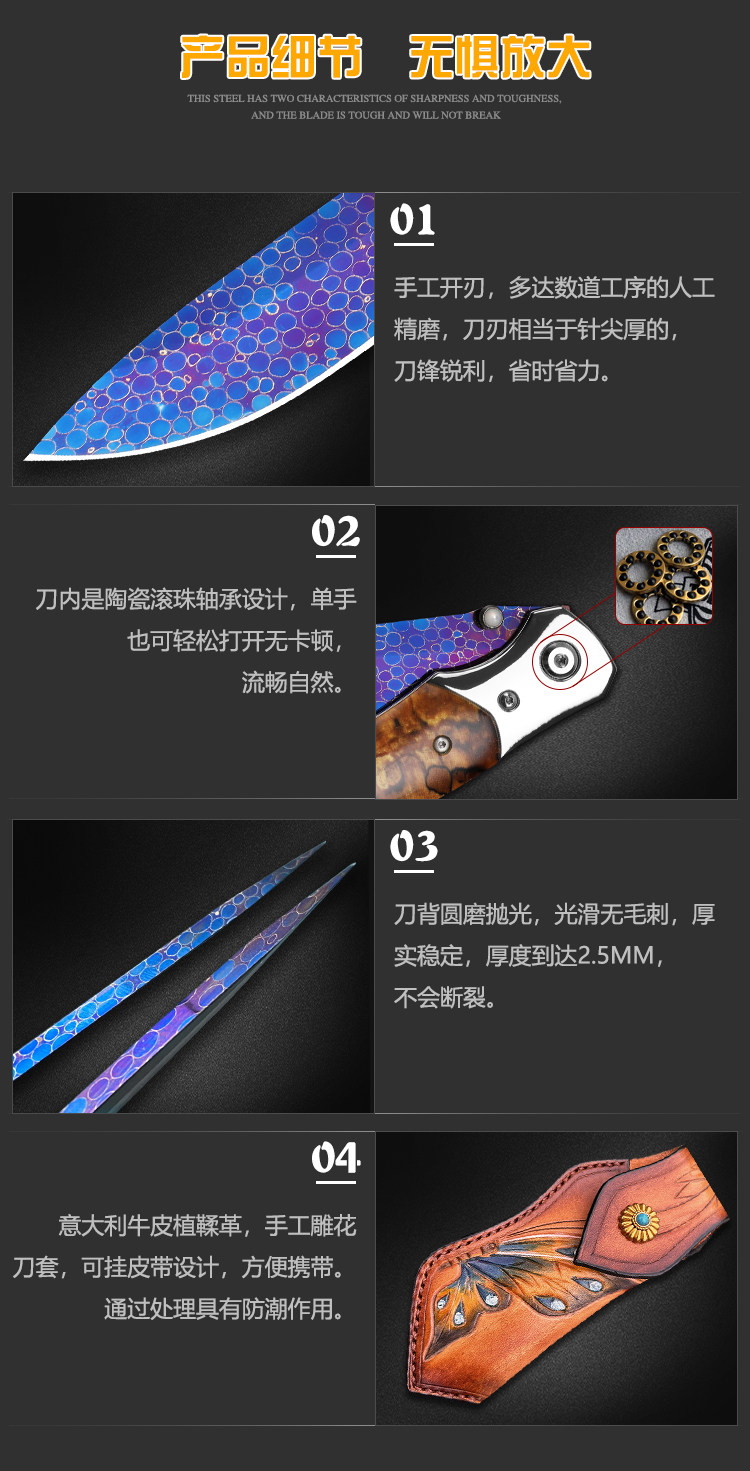 Подлинный импортный стальной складной нож из дамаска высокая твердость и острый нож