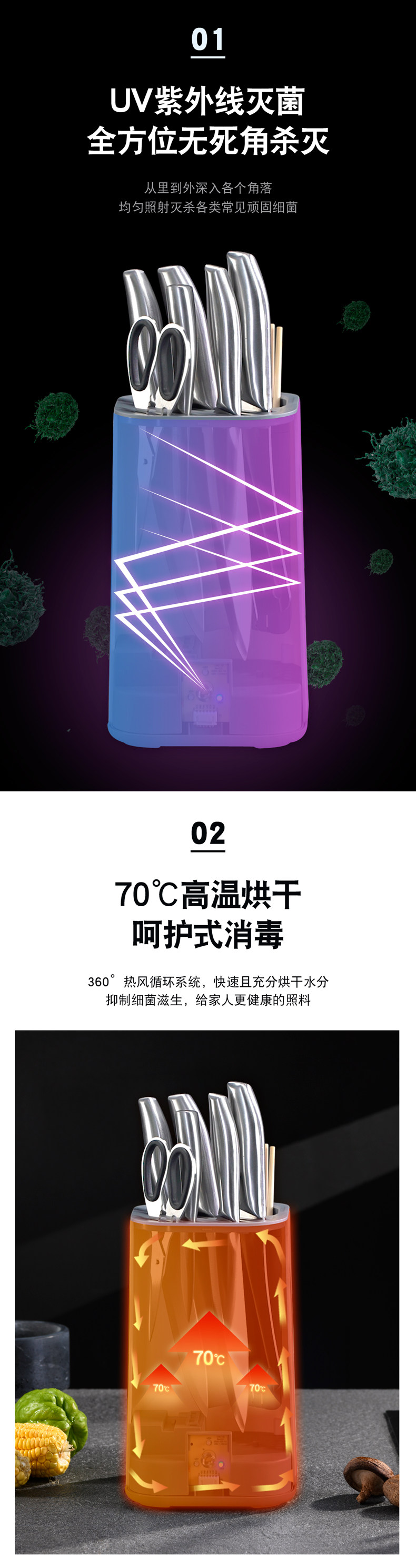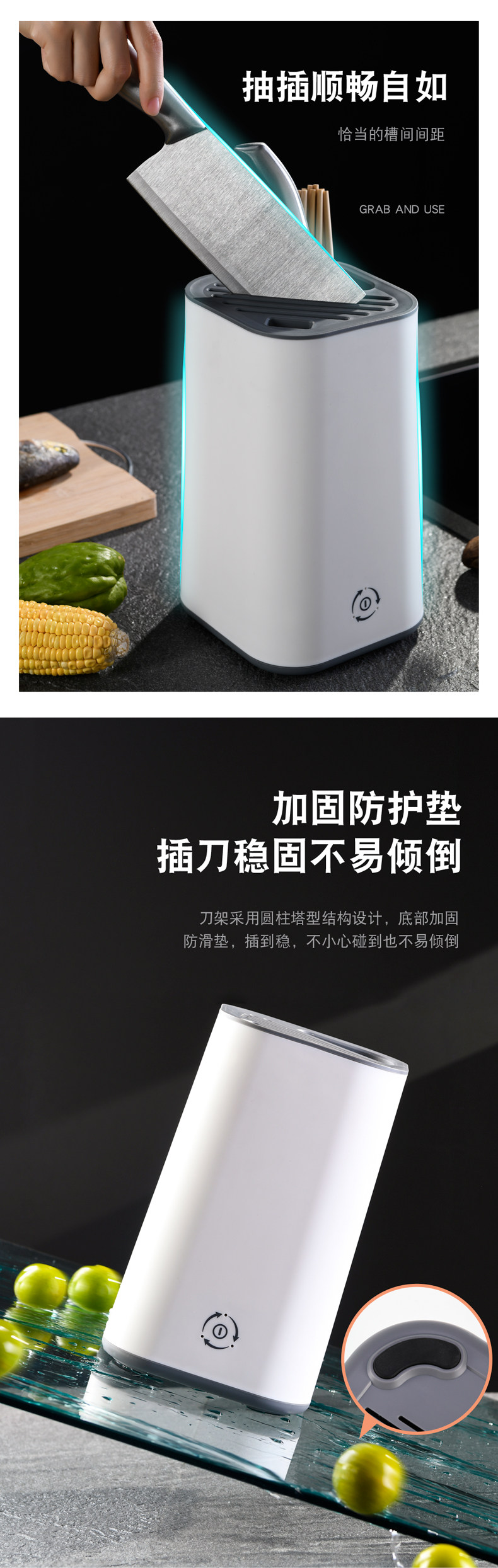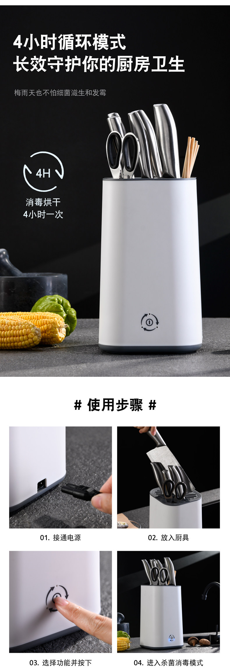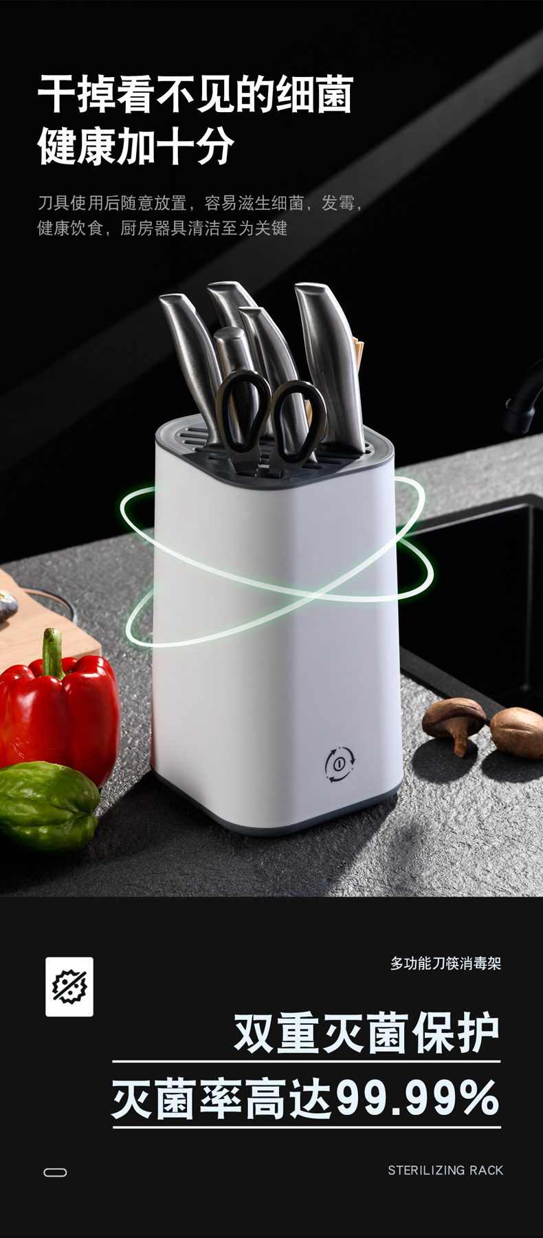 Дезинфицированная стойка для ножа, помещенная на лезвие, кухонные принадлежности в сочетании с палочками для еды, домохозяйством в доме