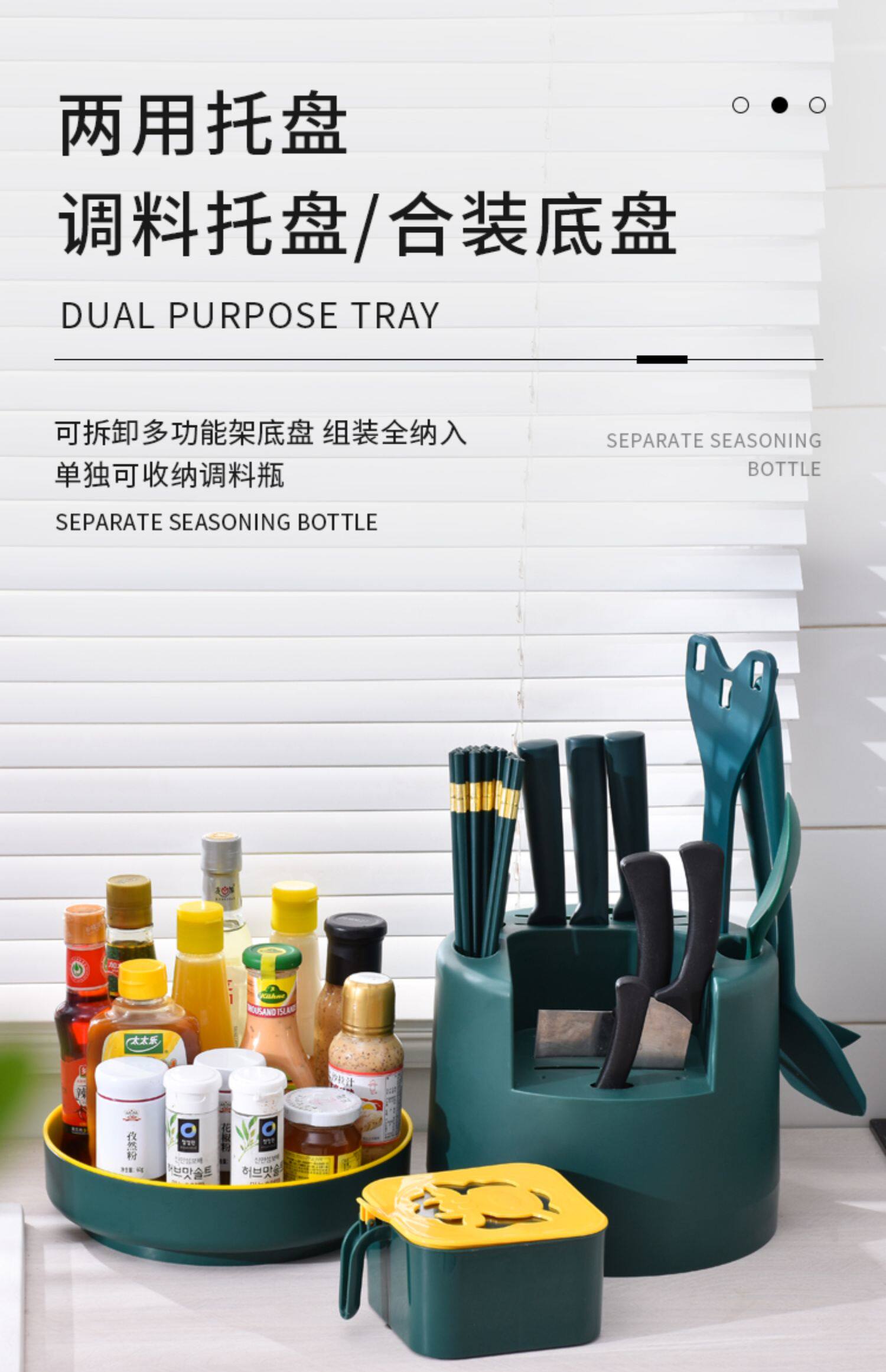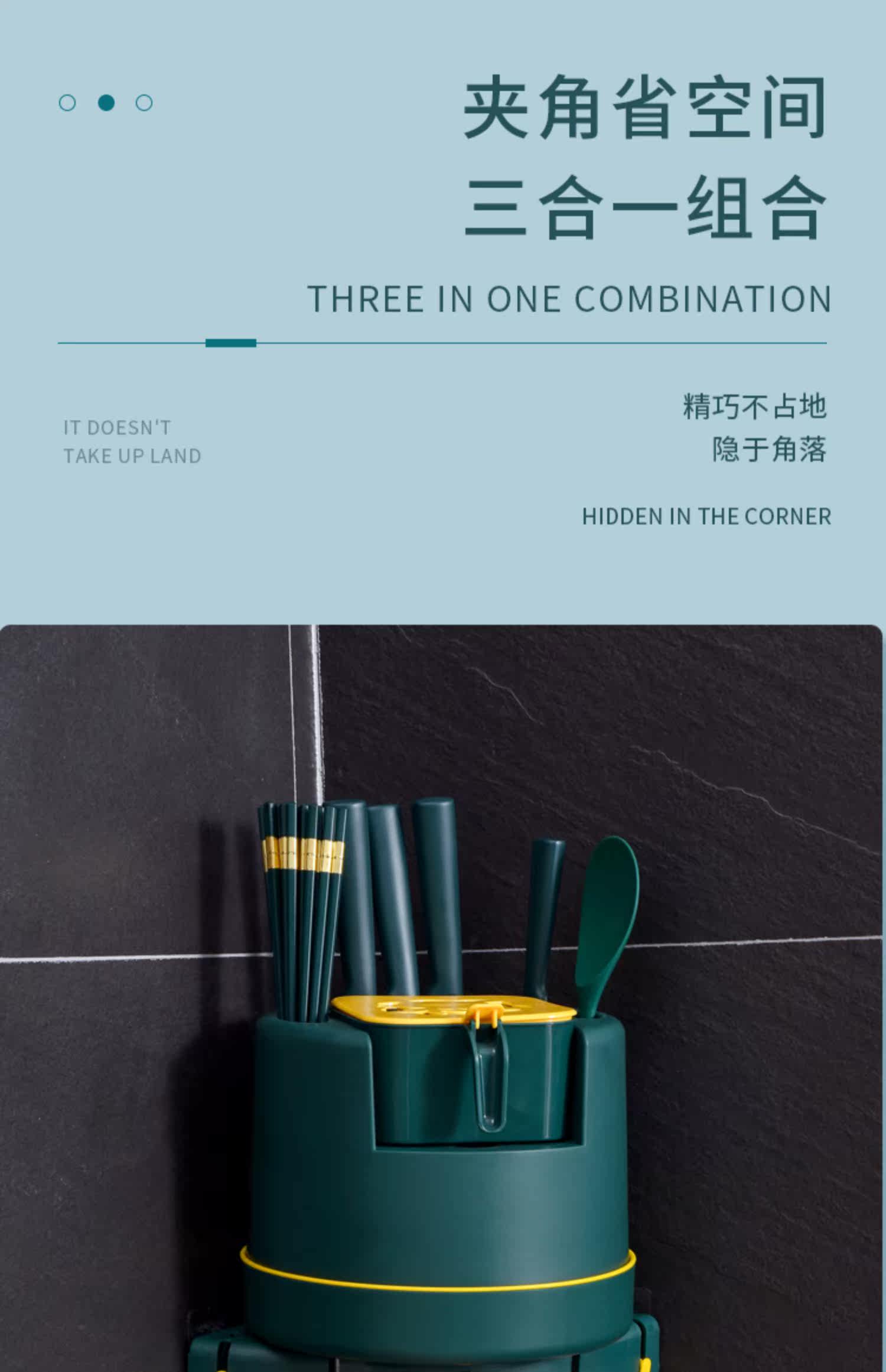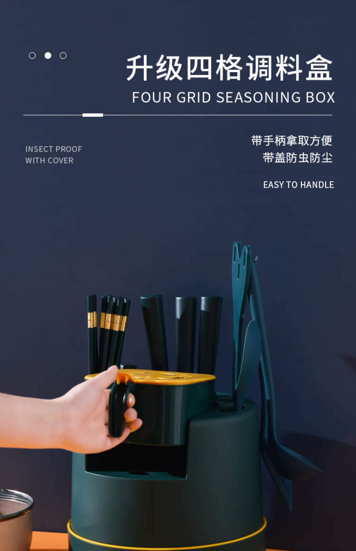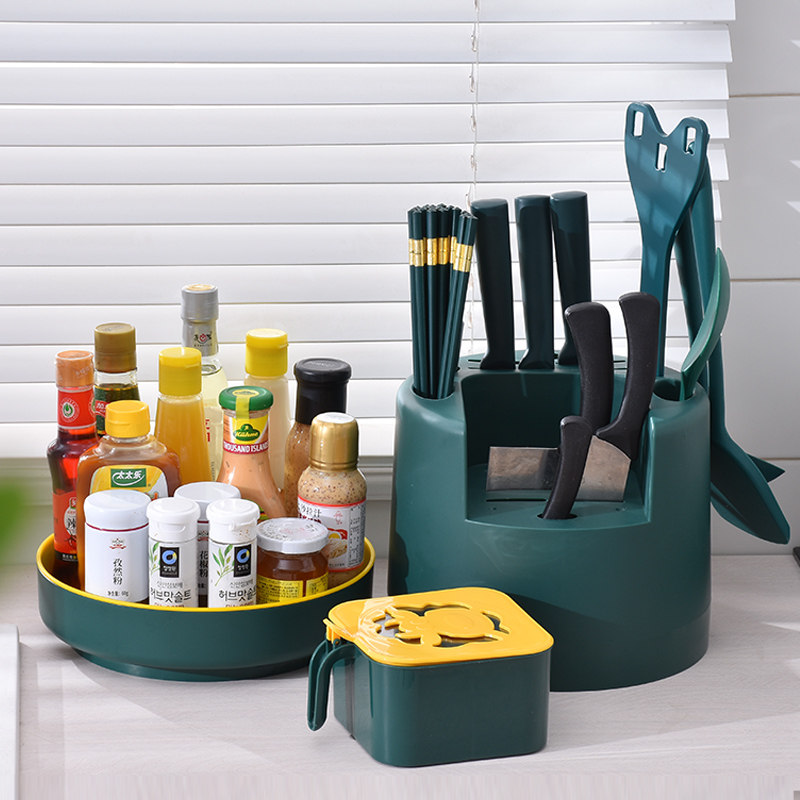 - Зарегистрированная на стене темно -зеленый [вращение 360 °+четырехгридная ящик приправы+крюк]