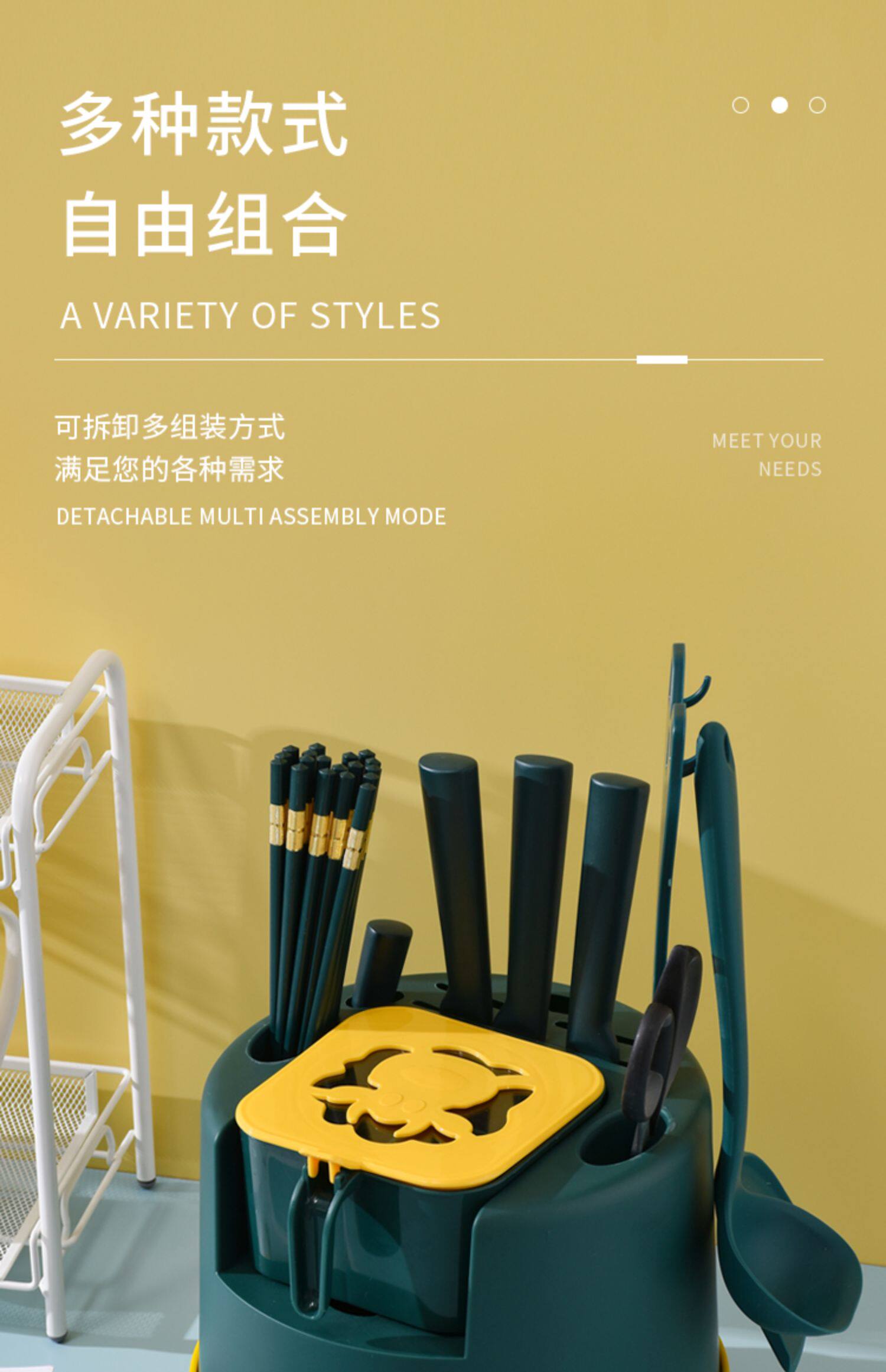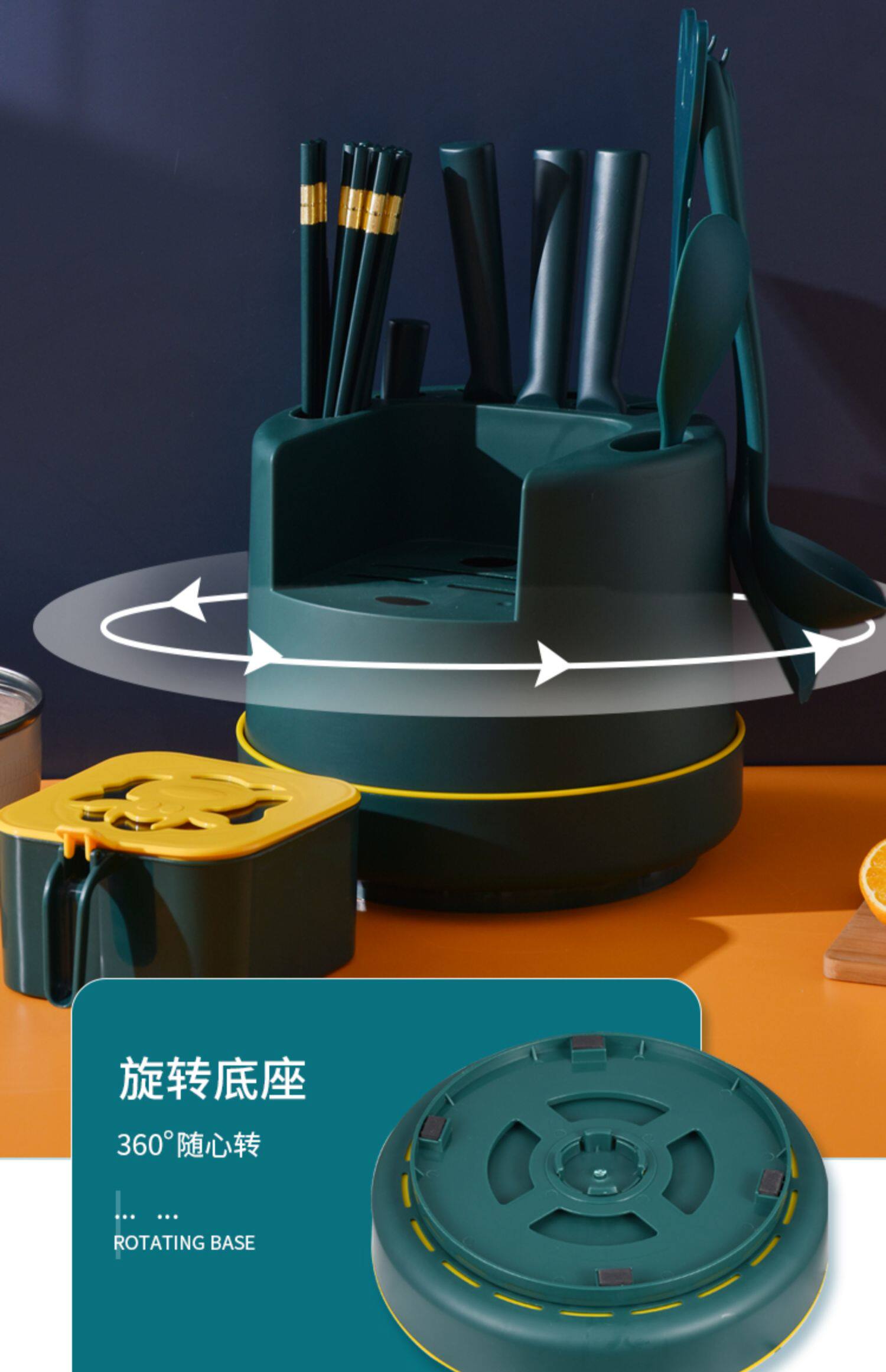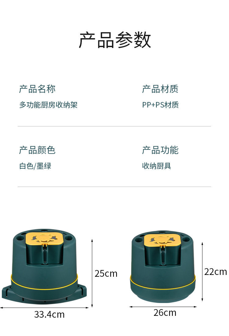 - Зарегистрированная на стене темно -зеленый [вращение 360 °+четырехгридная ящик приправы+крюк]