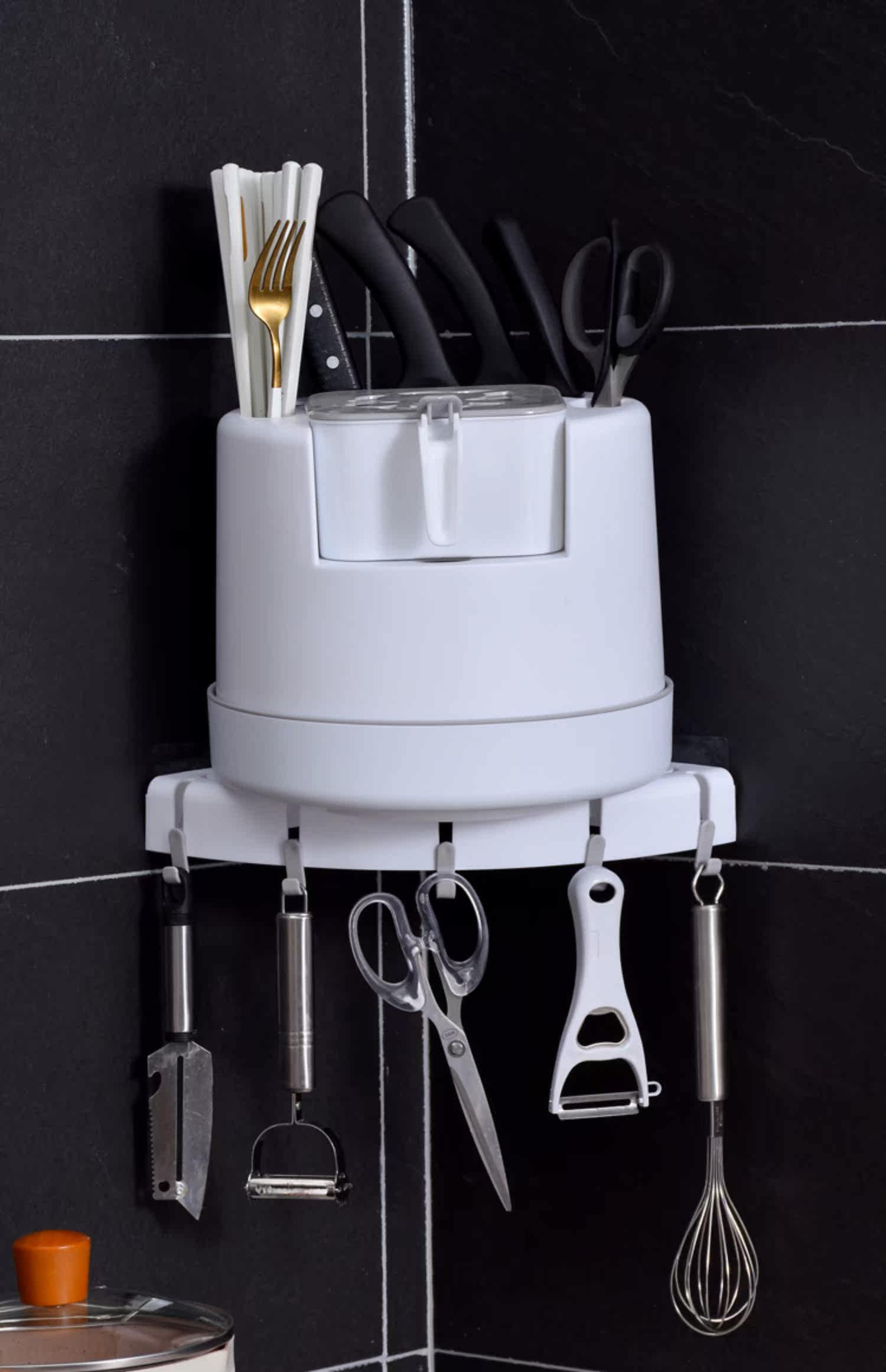 - Зарегистрированная на стене белый [вращение 360 °+четырехгридная ящик приправы+крюк]