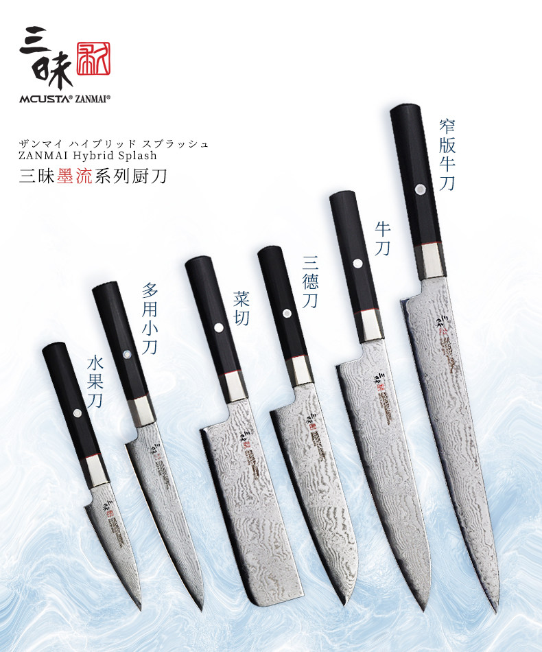 Япония импортировал Zanmai Samadhi VG10 Damascus Steel Home Японский кухонный нож Многофункциональные три ломтика добродетели