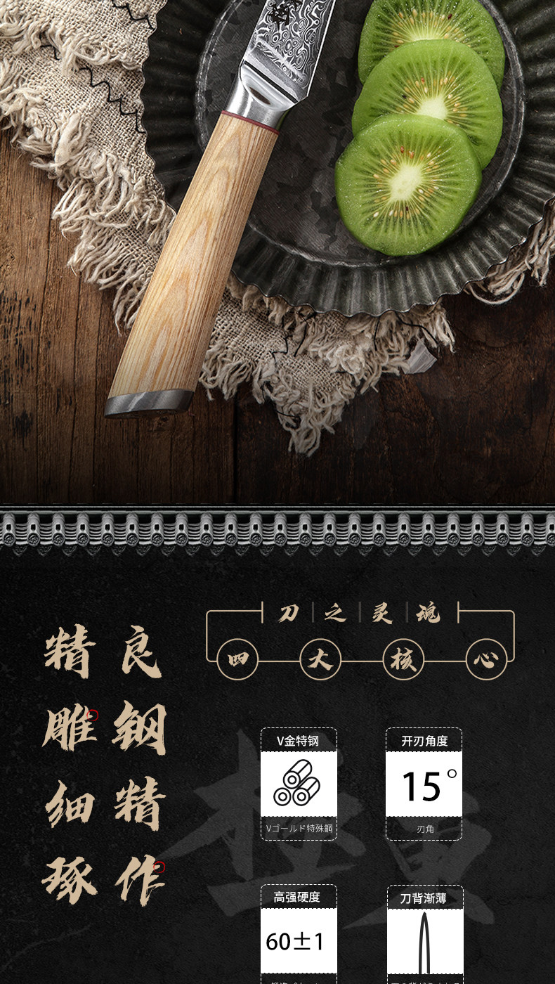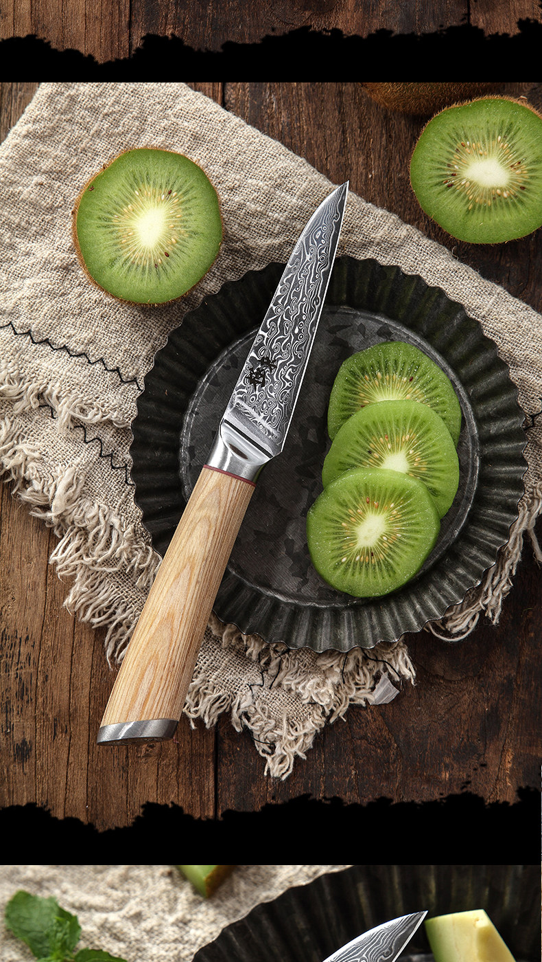 67 -layer Damascus Steel v Золотой фруктовый меч Peel 4 -дюймовый многофункциональный градиент -фрукты Профессиональная деревянная оболочка