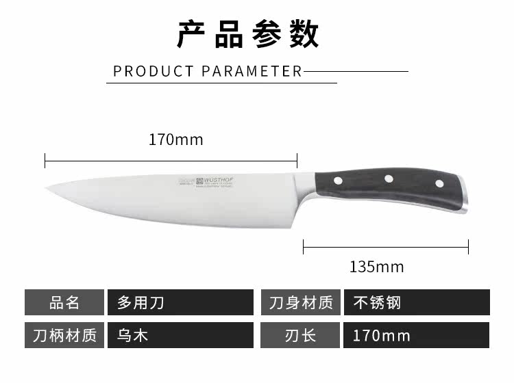 Немецкий универсальный нож Wuesthof с тремя вилками, кухонный нож, легкий нож шеф-повара из нержавеющей стали 4596