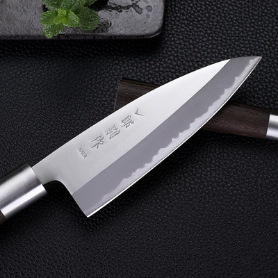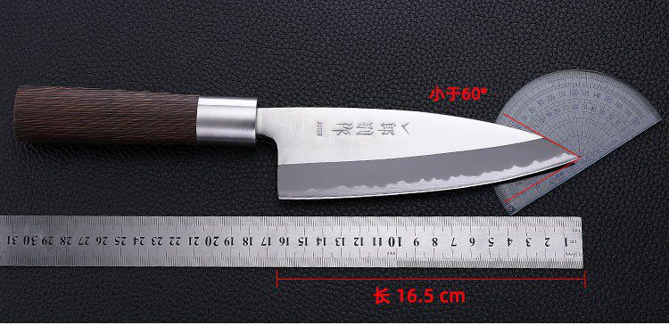 Высокий японский головной нож с лезвия лезвия, нарезанные кубиками японские блюда, кусочки рыбы сакрального ножа, профессиональный лосось тщательный нож