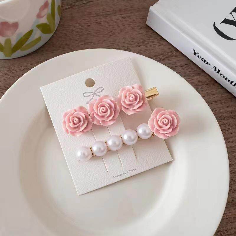 Розовая заколка для волос, брендовый высококачественный аксессуар для волос, в цветочек