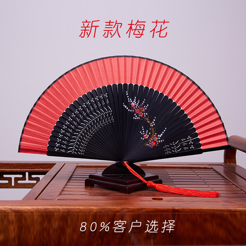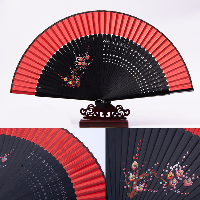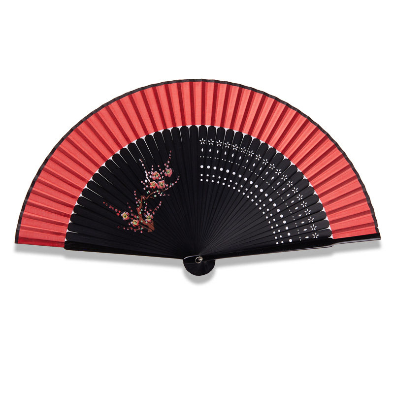 Портативный японский красный танцующий круглый веер, ручная роспись
