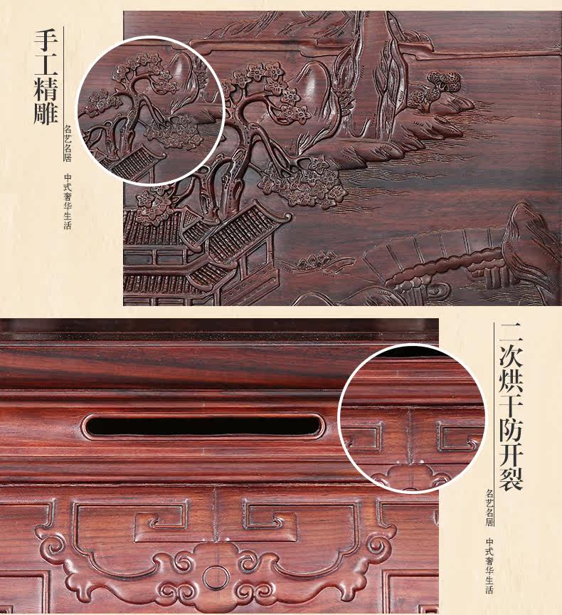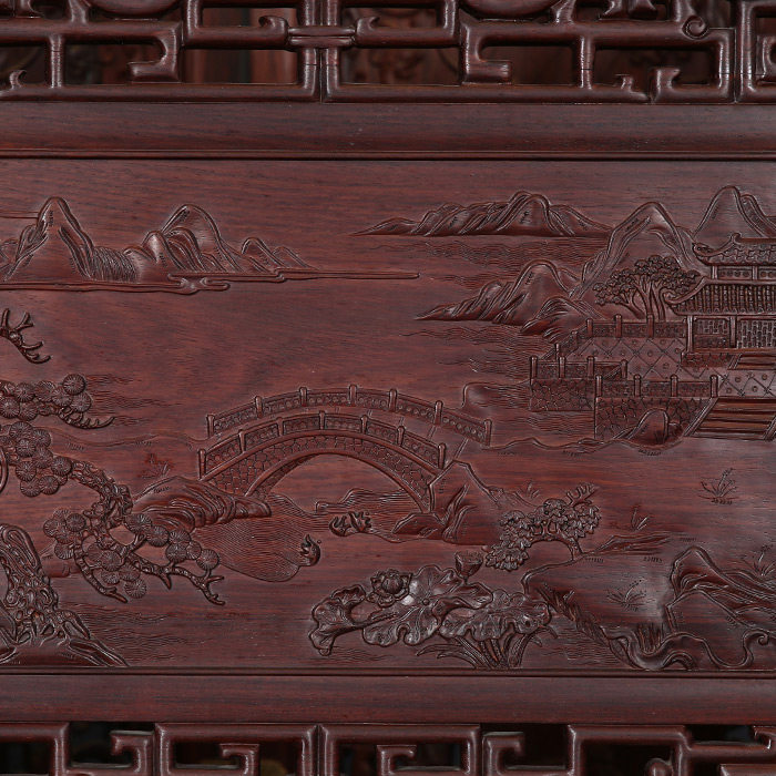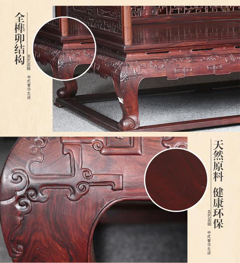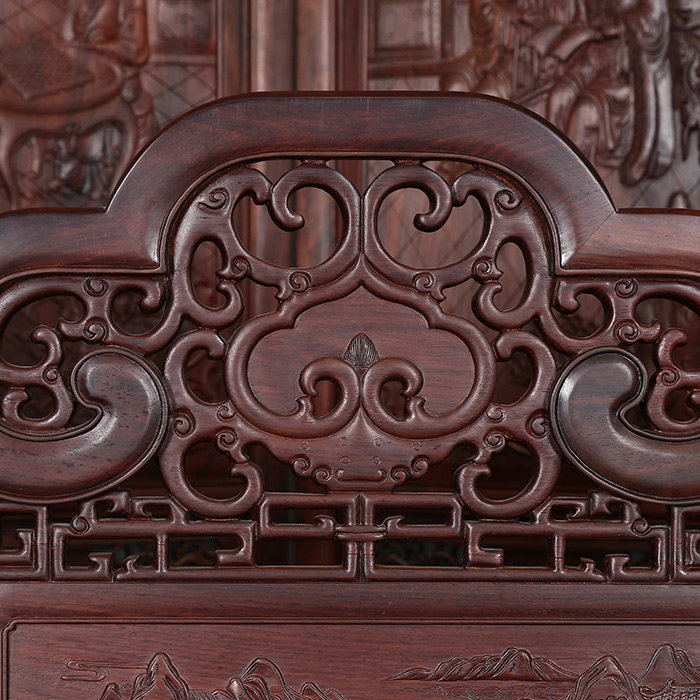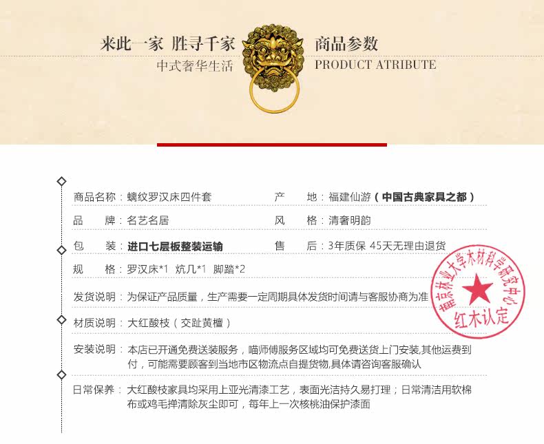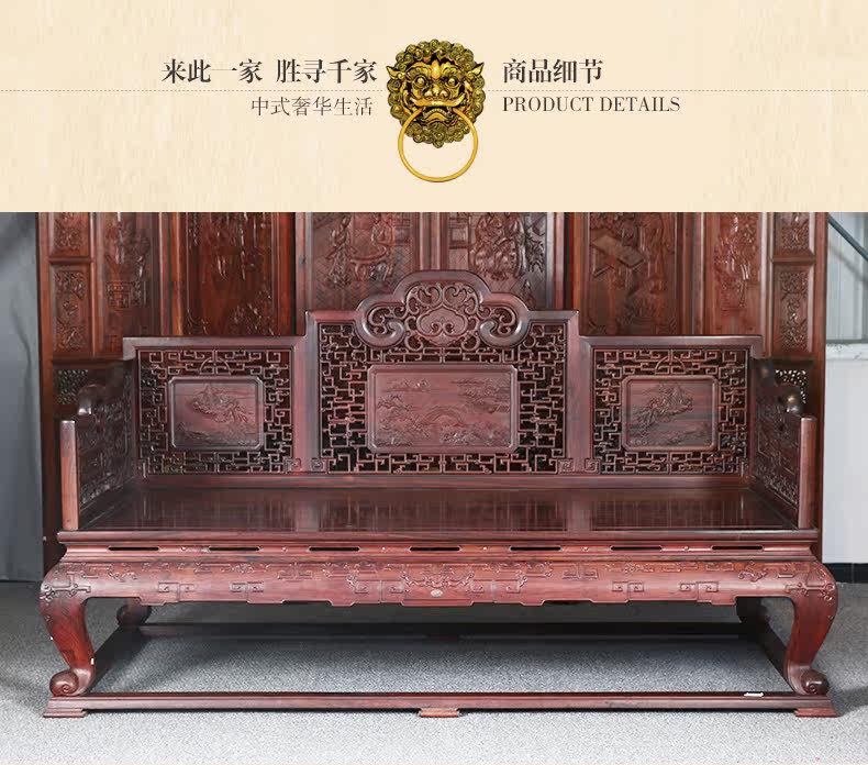 名艺名居 Большой красный розовый дерево, лента, кровать Luo Han Four -Piece 雕 大 艺 Классическое исследование мебели из красного дерева