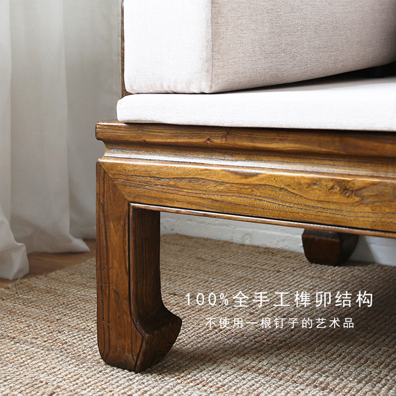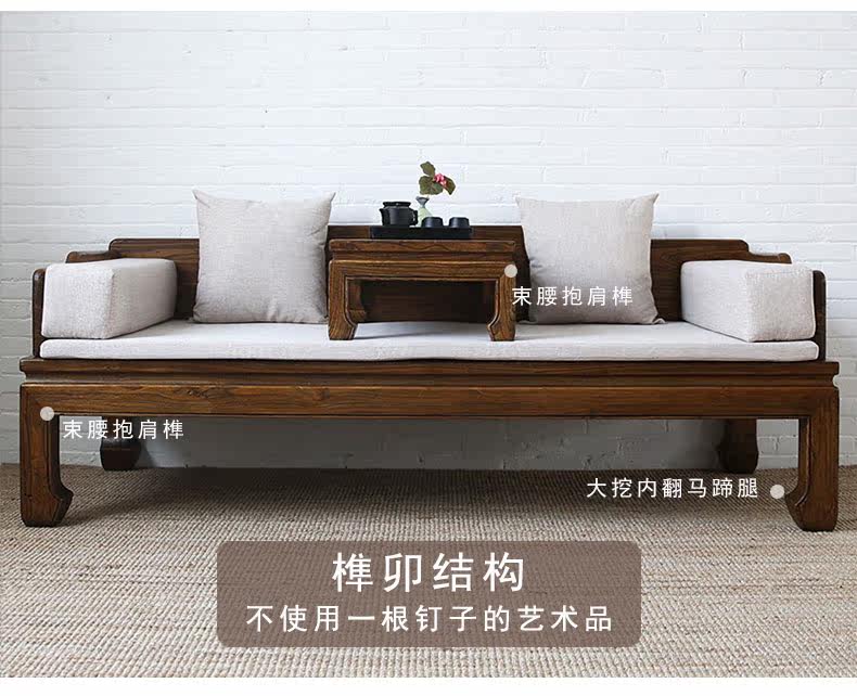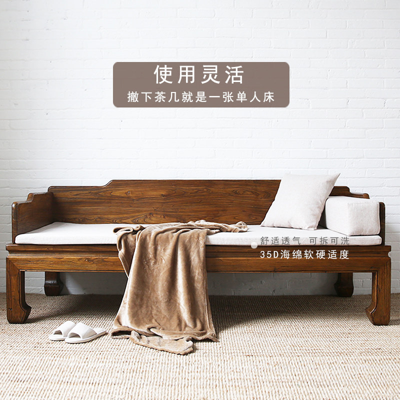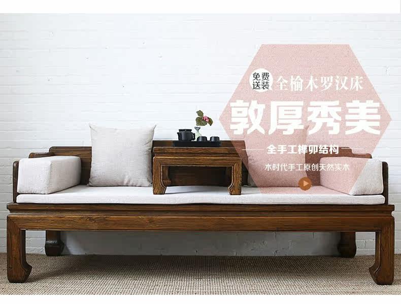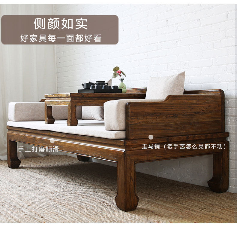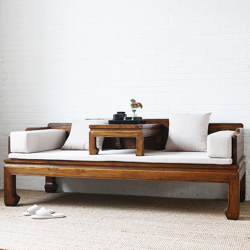 Новый китайский стиль старый Elm Luo Han Bed Bed Solid Wood Tenon -Mortar Dofa с ручным стулом Простая мебель для антиквариата, гостиная дзен, обвал наложник