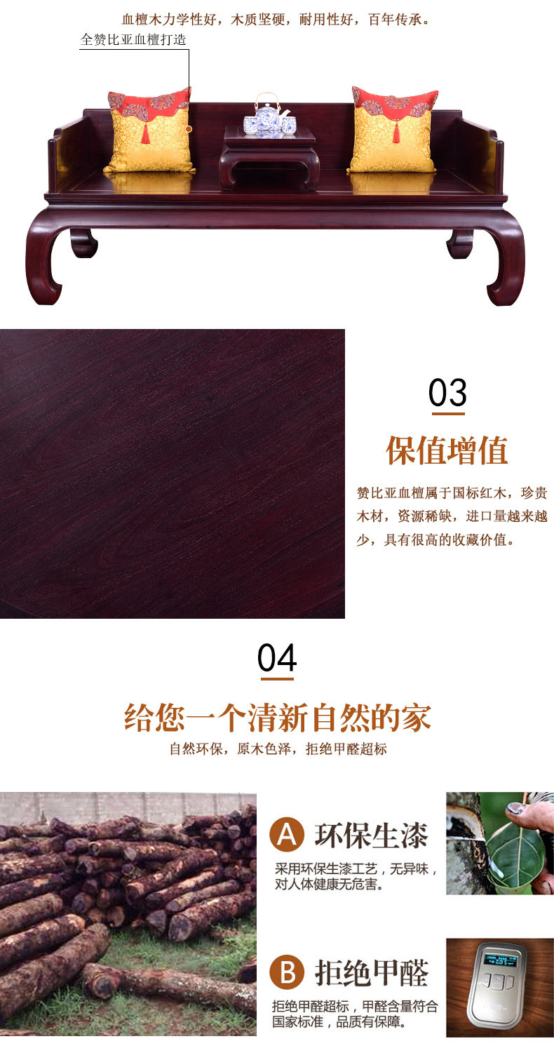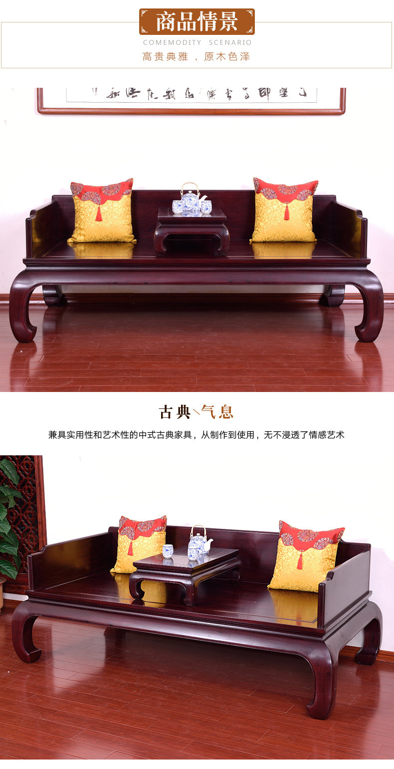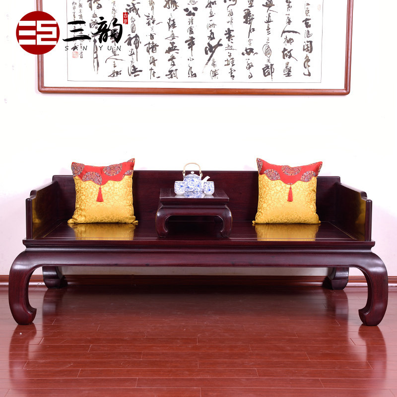 Логировая мебель Zambia Blood Tan Luo Han Bed Двухклассная сплошная деревянная кровать китайский диван диван Уолхэм кушетка дзен