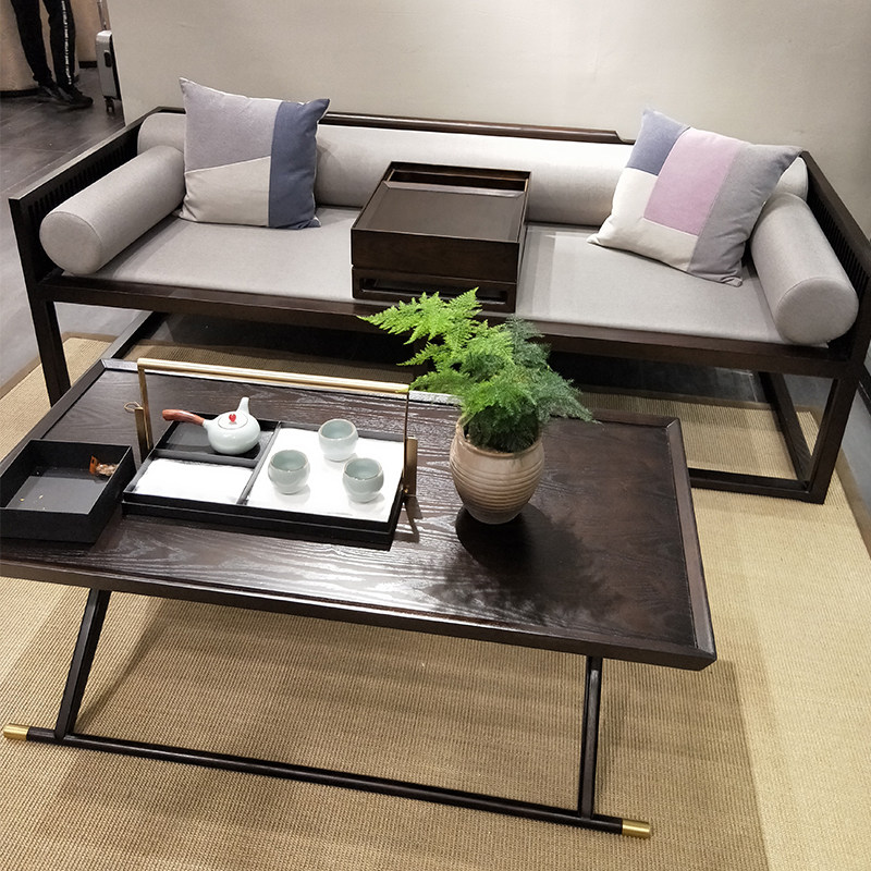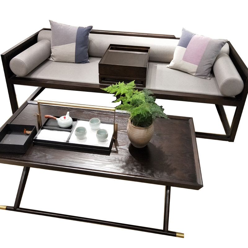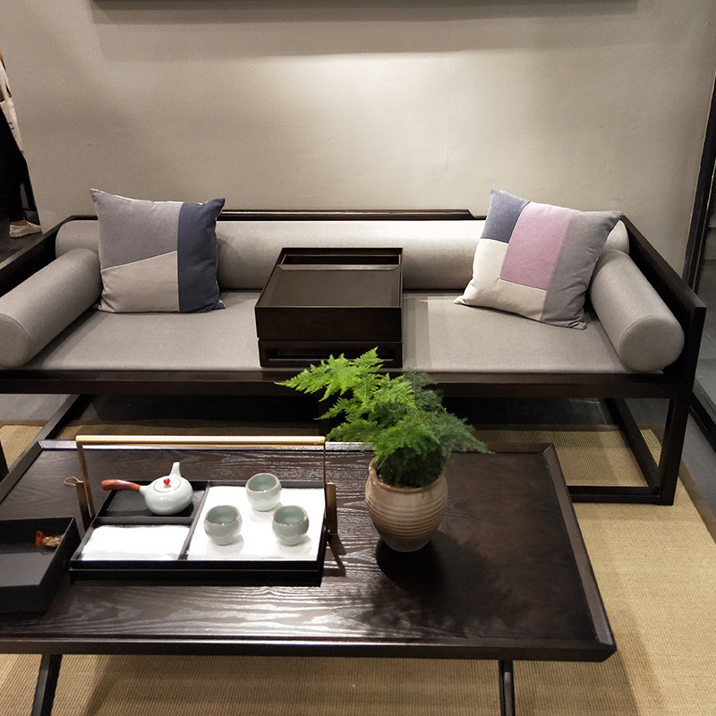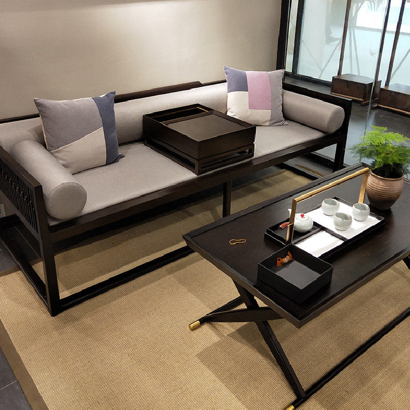 Новая китайская сплошная деревянная кровать, антикварная двуспальная кровать, наложная гостиная диван -кровать дзен Zen Простая комбинация