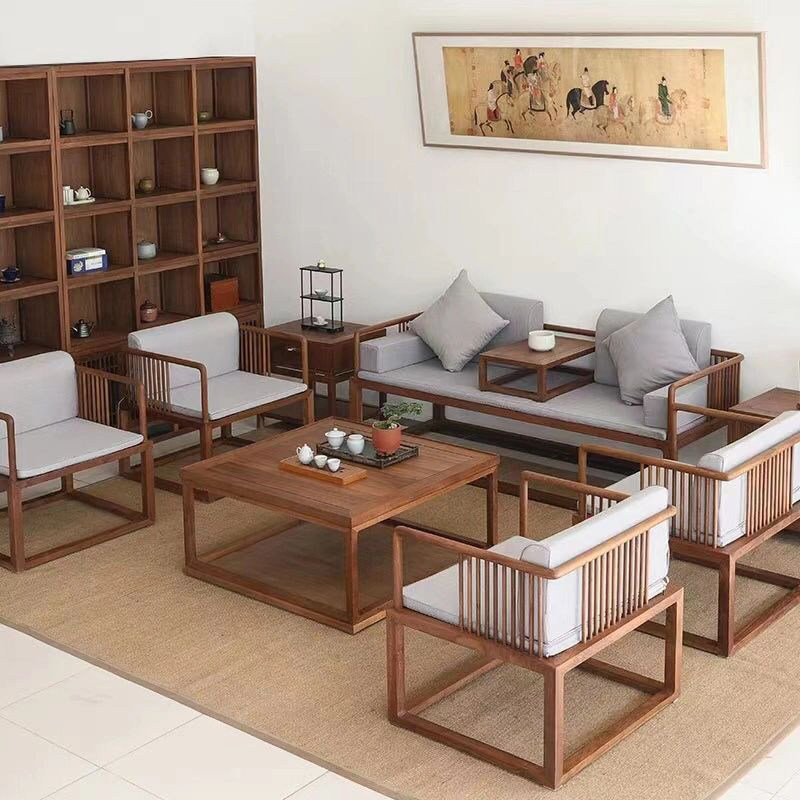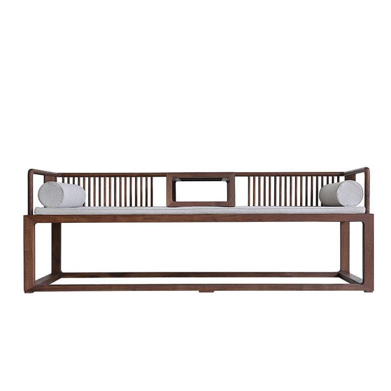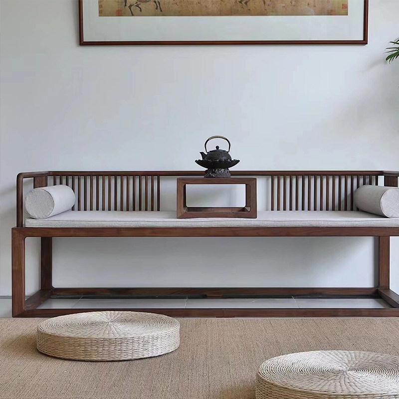 Новый китайский стиль дзен комбинированная диван с твердым деревом гостиной Luohan кровать, наложная антикварная ткань Beonwood, небольшая квартира