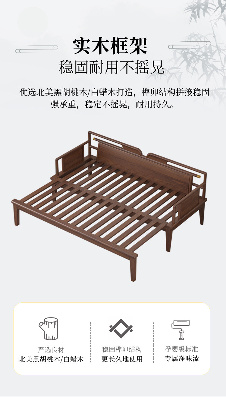 Новая китайская стиль кровать Luohan с твердым деревом толкатель